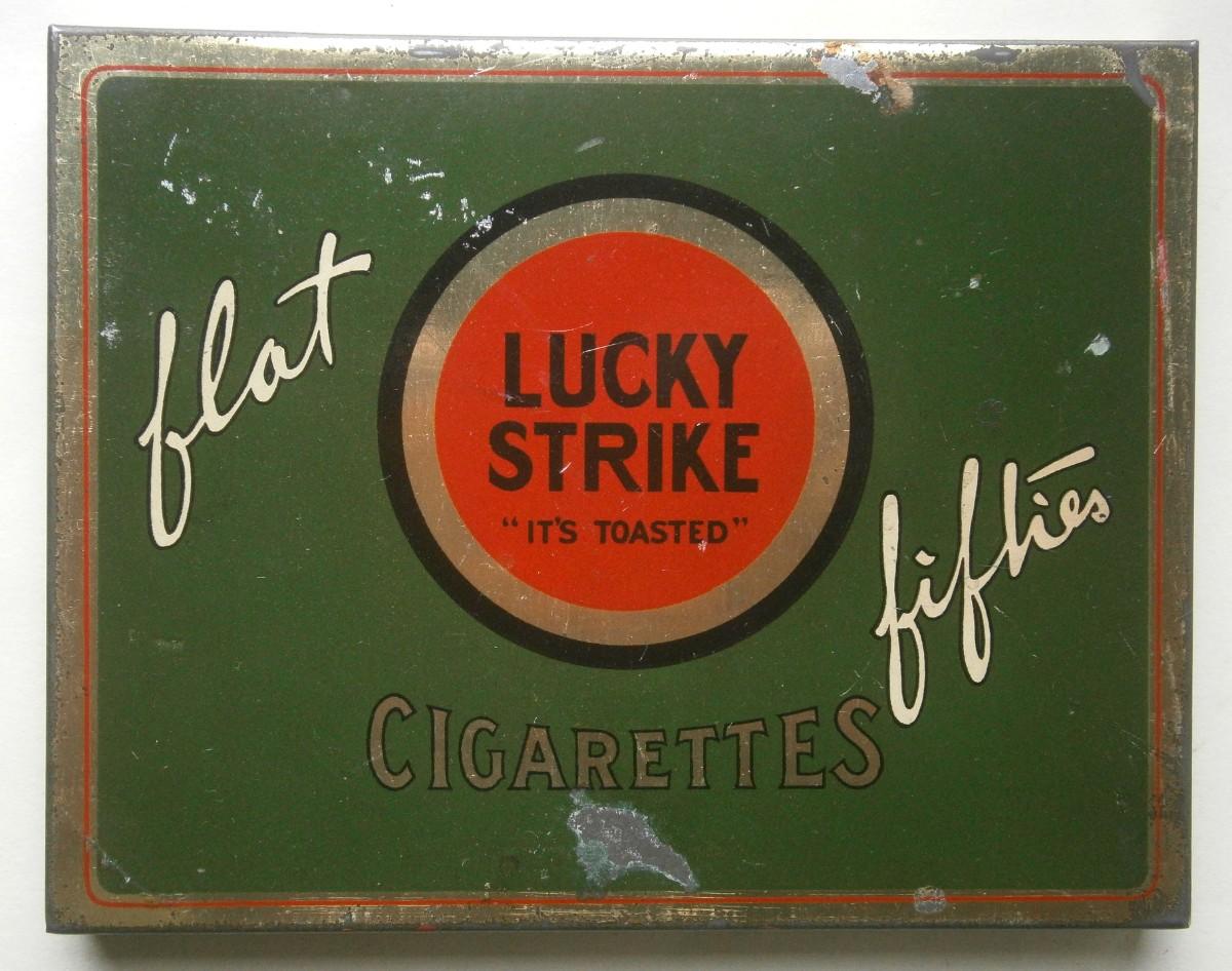 LUCKY STRIKE flat fifties CIGARETTES Tin, vintage, 5 3/4 x 4 1/4 in., lithographed tin.