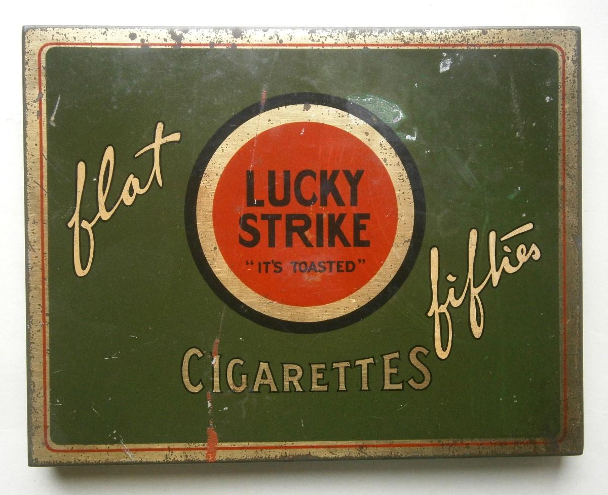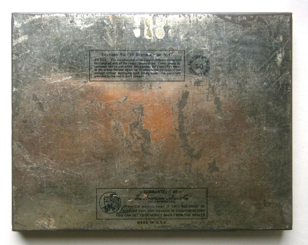LUCKY STRIKE flat fifties CIGARETTES Tin, vintage, 5 3/4 x 4 1/4 in., lithographed tin.