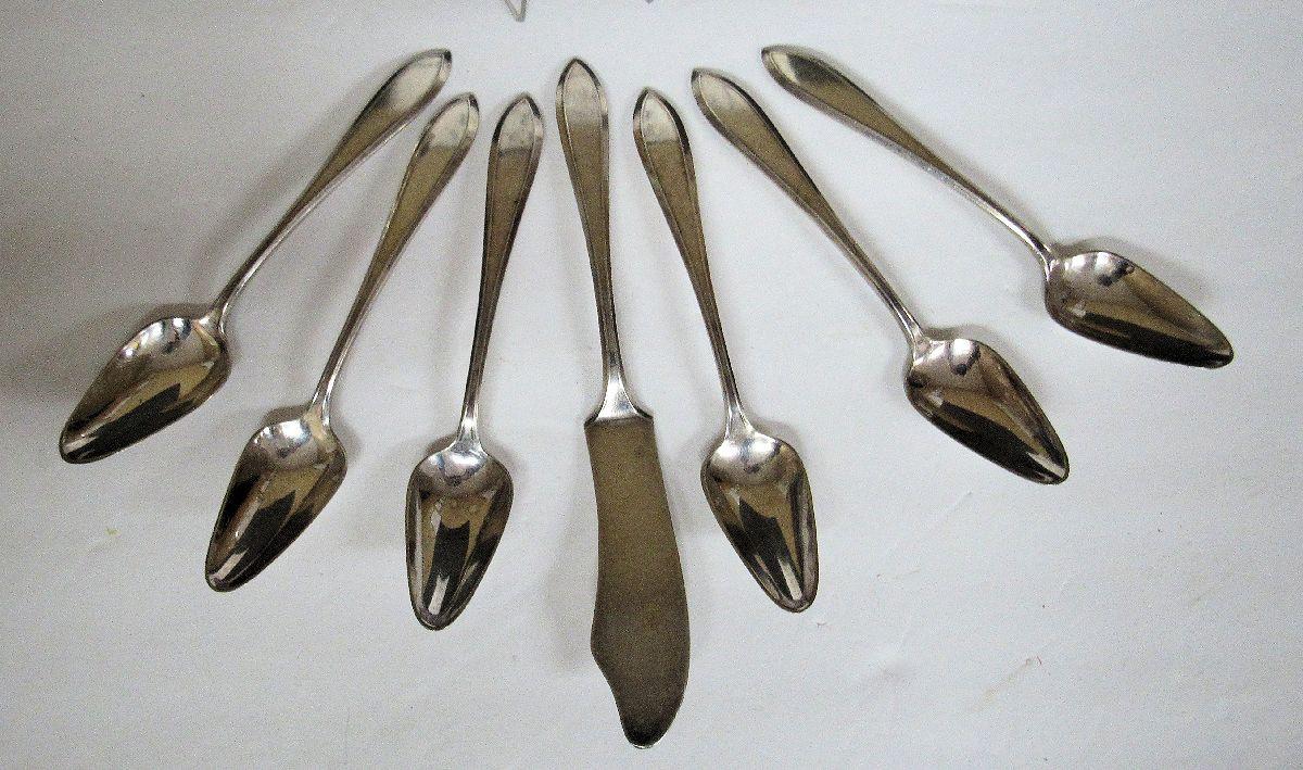 Lufberry Pattern William Rogers Silver Plate, 6 Unusual Spoons and Serving Knife