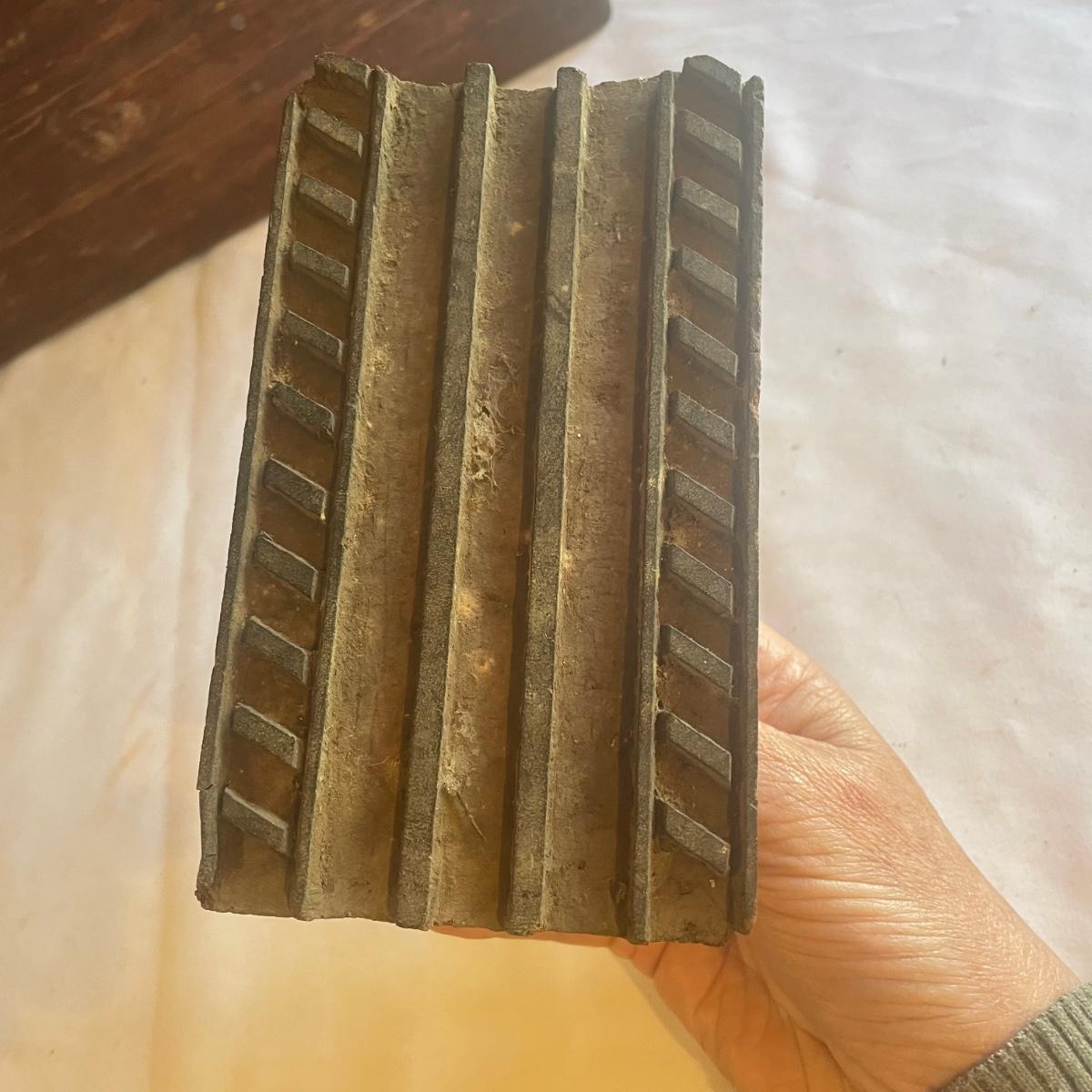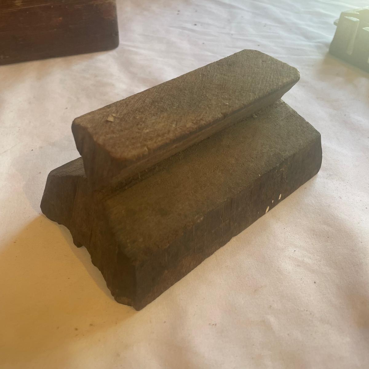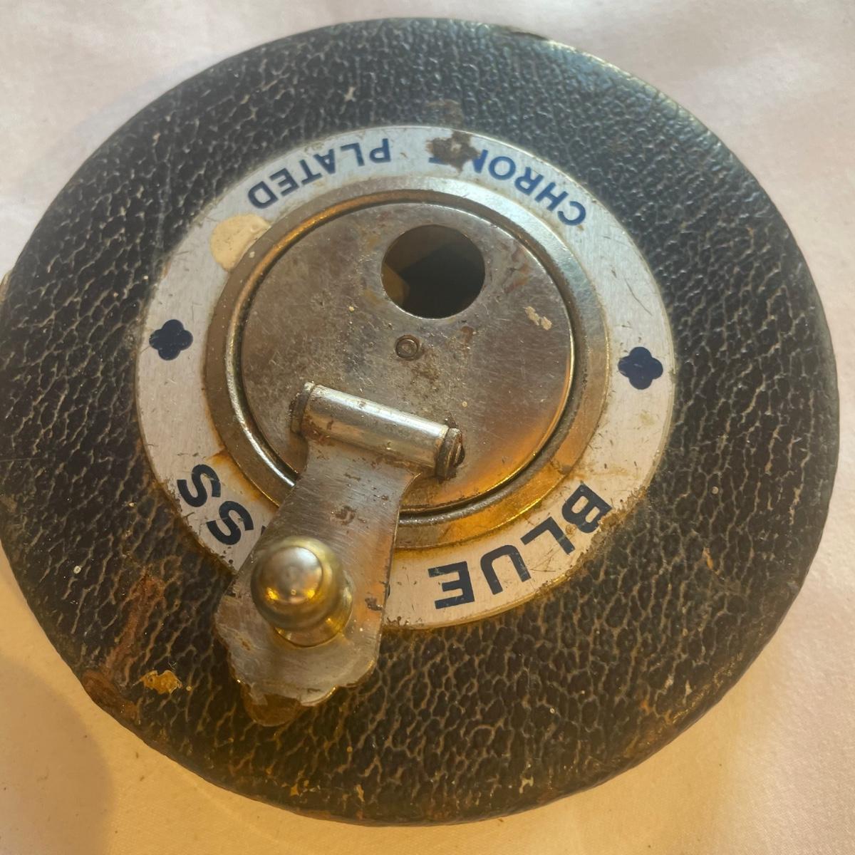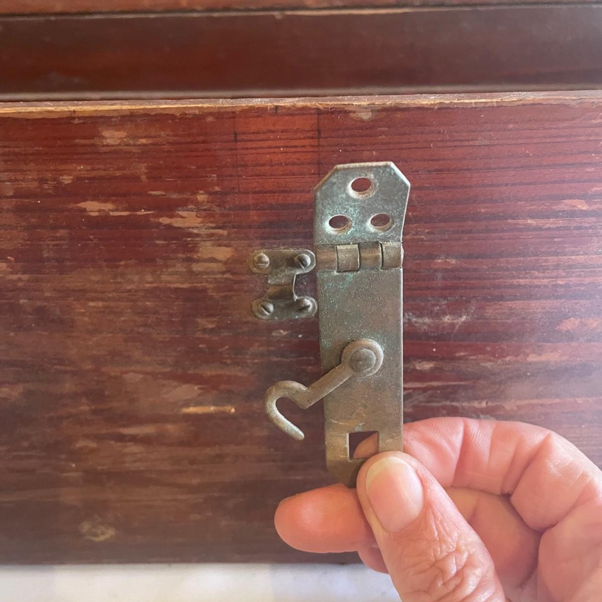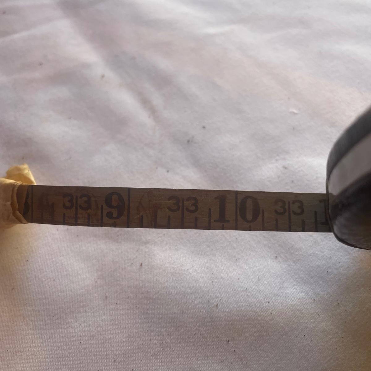 Vintage Clipper "Guide a Cut" Miter Box made of heavy metal. Lot also has two antique tape measures that both work but one does have some tape on the end as the first couple of inches are broken off. Also included is a wooden ruler from an Asheville Co,. a wooden level and more. Note the toolbox is missing it’s top but as it’s a great antique box we threw it in with these other antique tools.