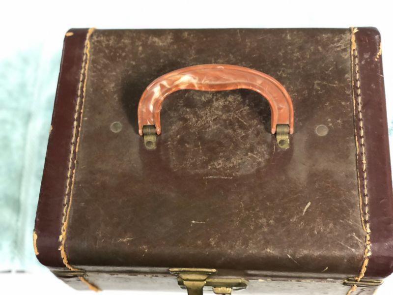 Vintage brown toiletries case. Fair condition, signs of wear and use.