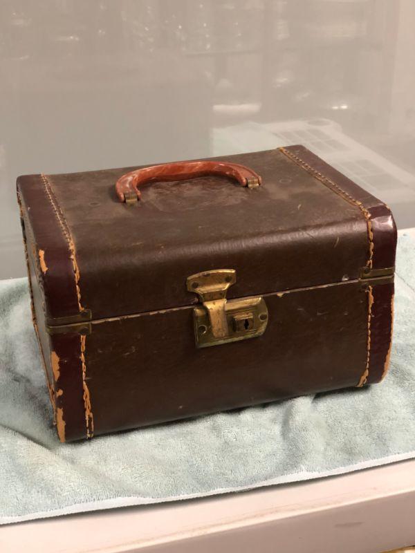 Vintage Brown Luggage Makeup Toiletries Beauty Case