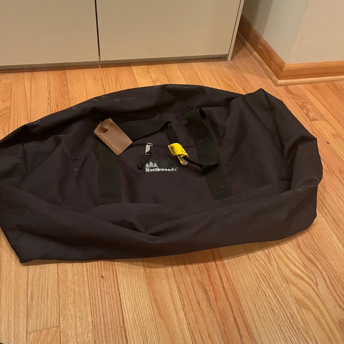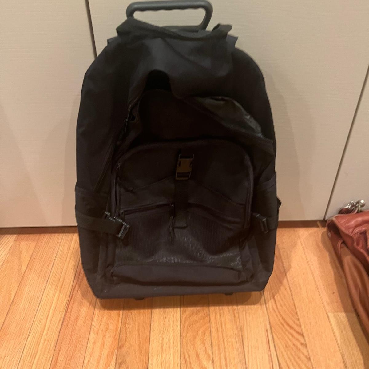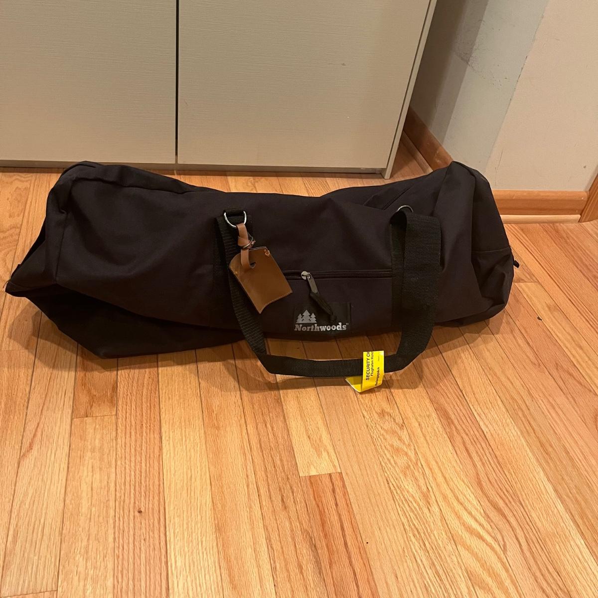 Lot includes three hanging bags, two wheeled cases , Northwood duffle bag that measures 30”. 14” x 14”. Most items are man made materials with two hanging bags that appear to be leather.