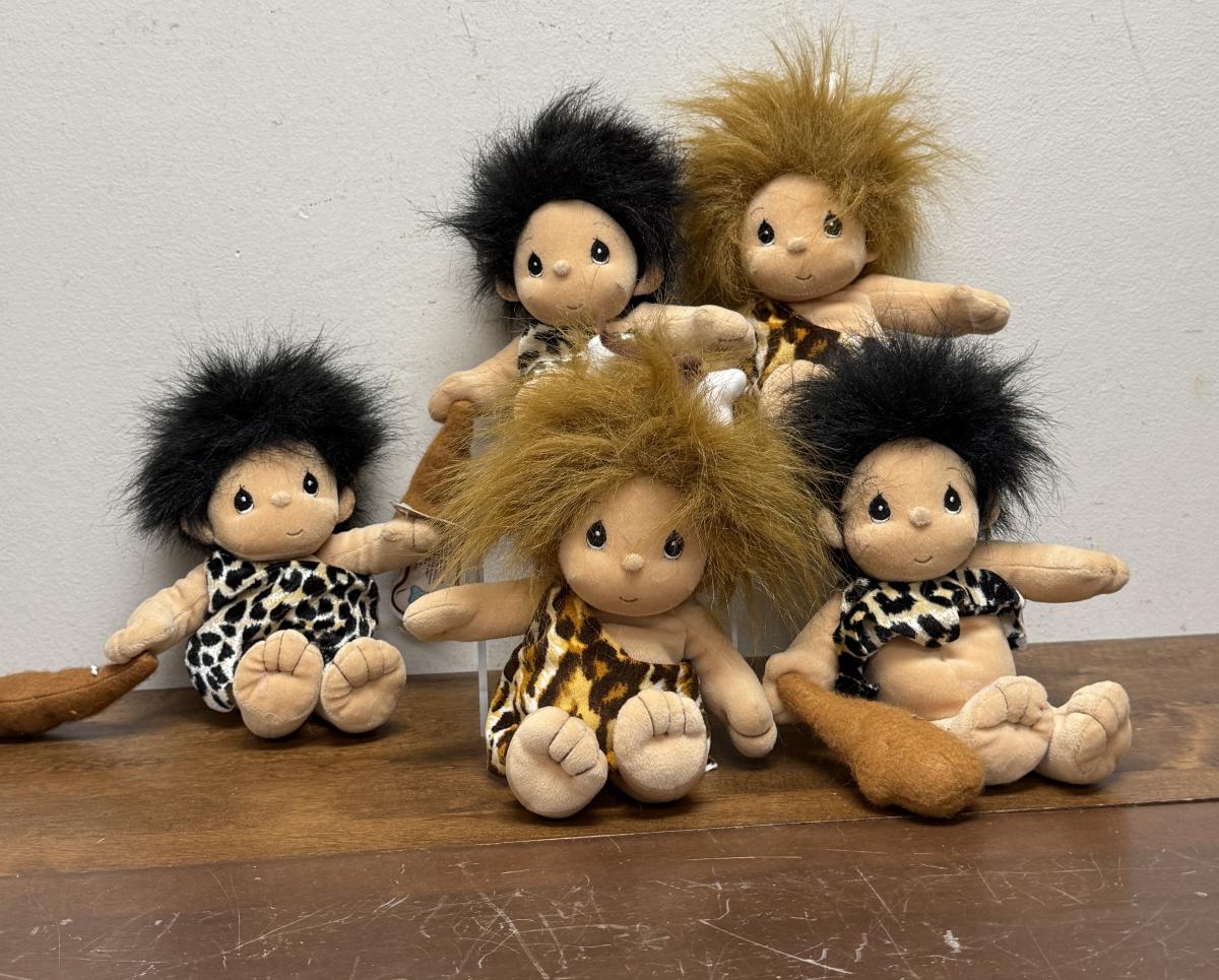 Precious Moments Tender Tails Cavewoman & Caveman Plush toys Lot - 5 plush dolls