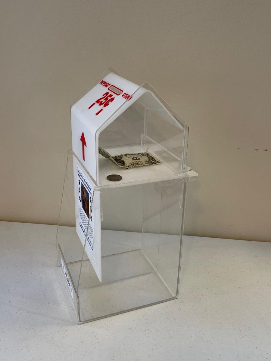 I have 100 of these acrylic donation Boxes. Client Used them to collect donations for The Animal Recovery Forum, however, they can be used for any charity or money making business. All boxes can be locked. There is a photo of the letter she used as a sample for you. Would like to sell all of them in one lot, but would consider splitting them. Please call Denise if you wish to split them if a bid has not been placed for all 100. These custom boxes are approximately $40.00 each to make based on this specific size. Owner would like $10.00 each. I will arrange for you to pre-view them if you are interested.