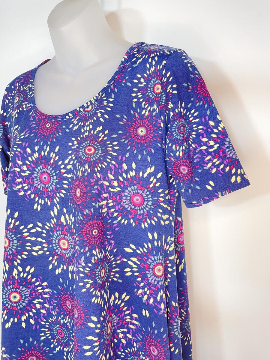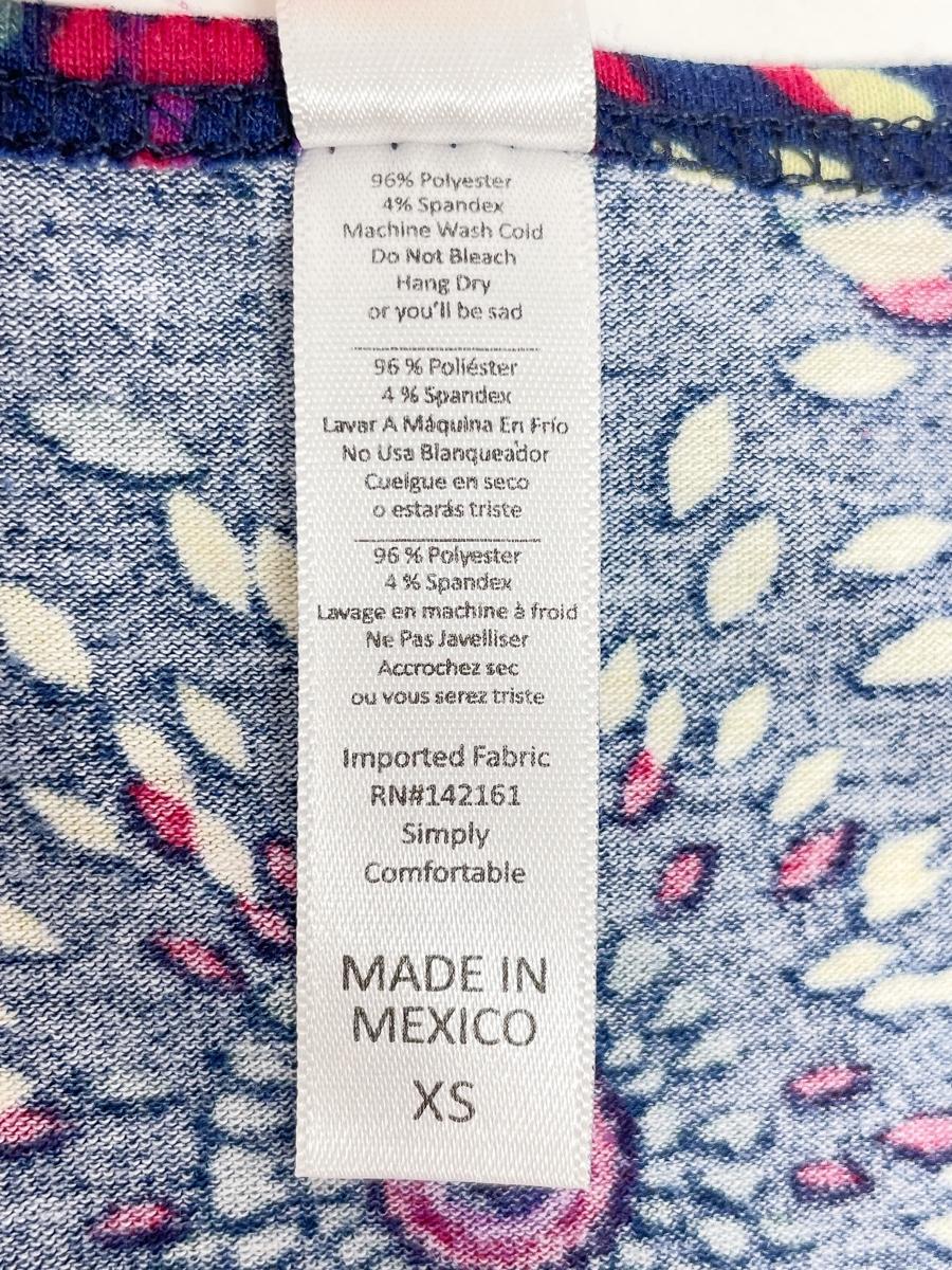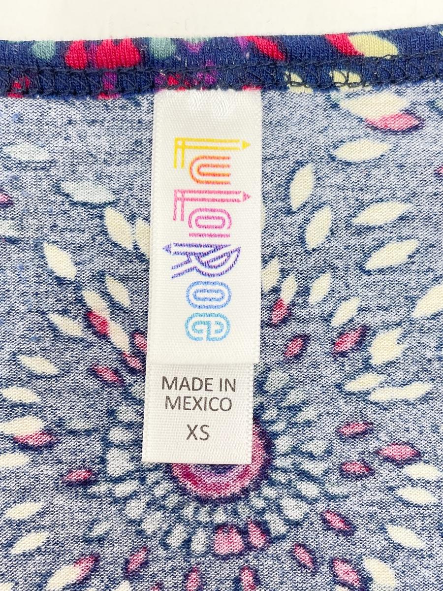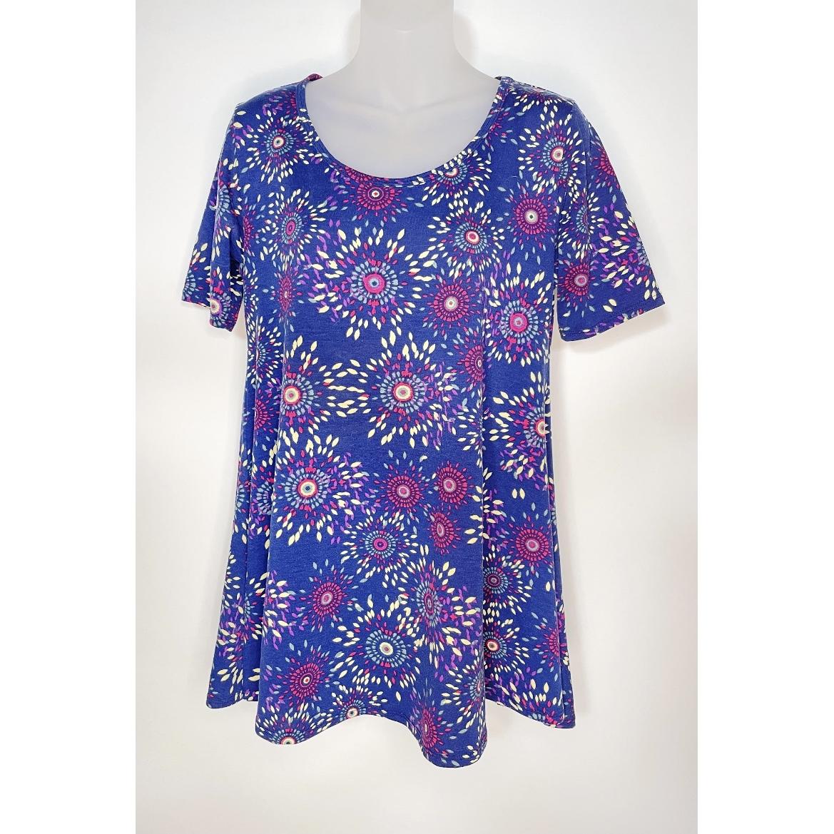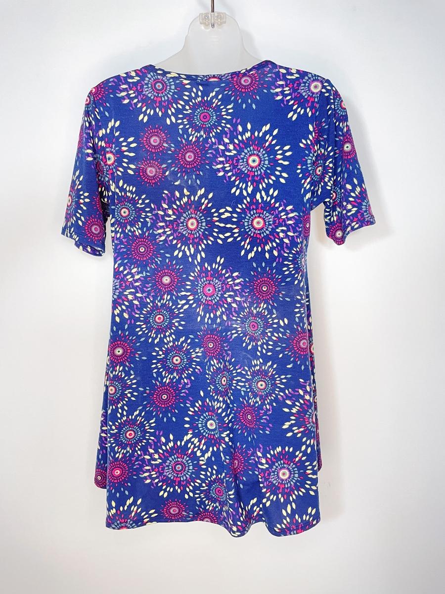 LULAROE BLUE & RED PATTERNED TOP - SIZE XSMALL