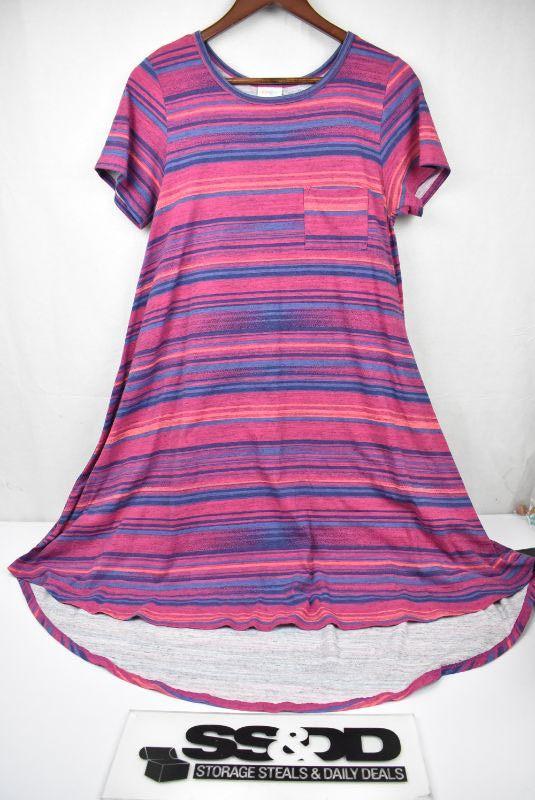 LuLaRoe "Carly" Dress. Size Small, Fits like Med/Large. Purples/Pinks Stripes