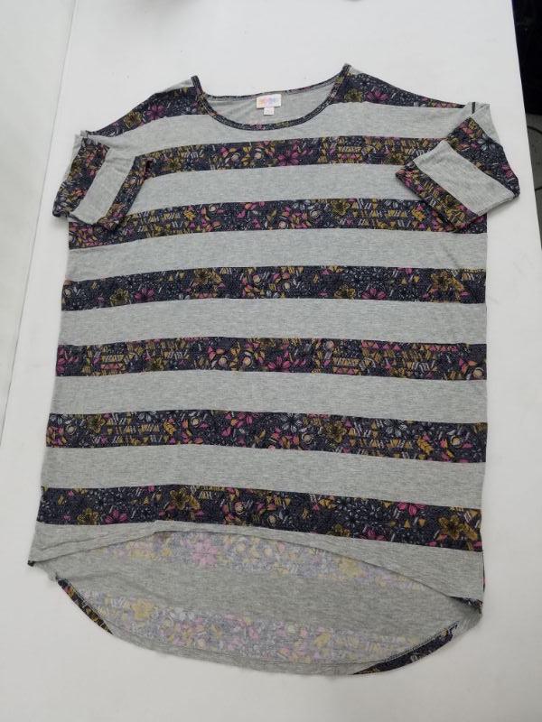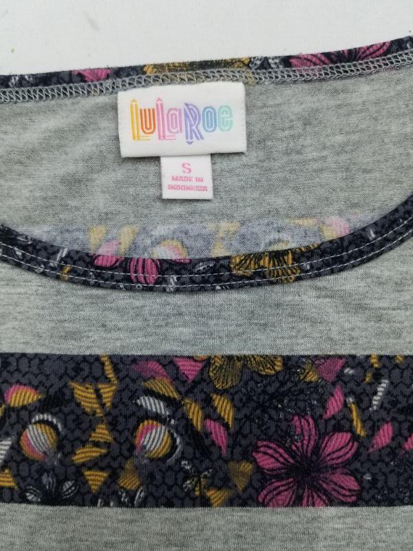 LuLaRoe Irma Shirt, Women's Size Small (but runs larger) Gray & Floral Stripe