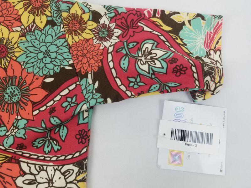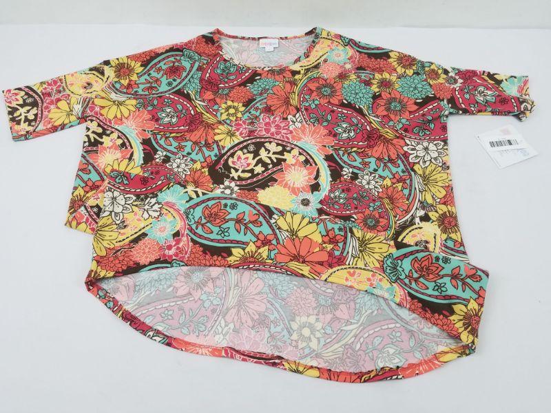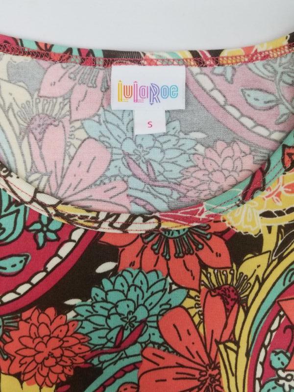 LuLaRoe Irma Women's Shirt, Size Small, Runs Large. Brown with Floral & Paisleys in Pink/Yellow/Cream/Aqua/Coral - New