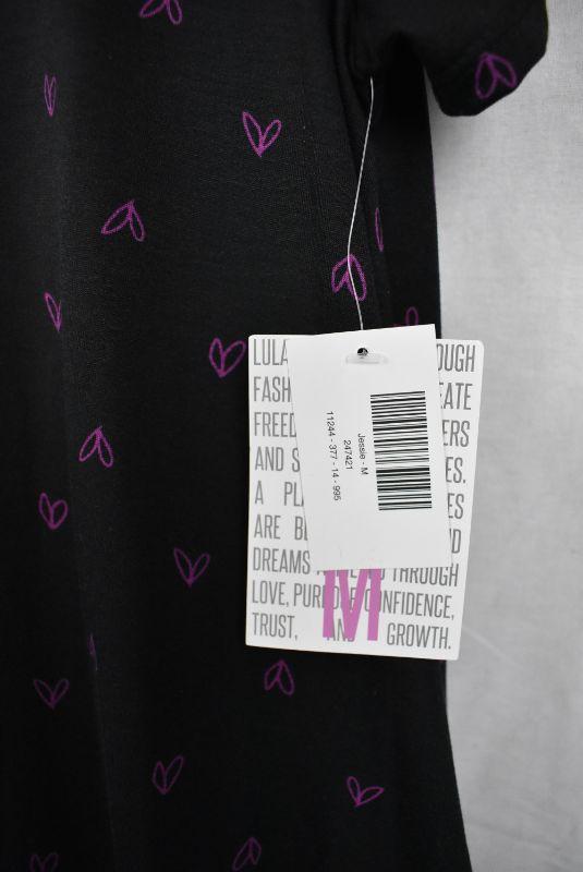 LuLaRoe "Jessie" Dress. Black with Pink Hearts. Pockets. Size Medium - New