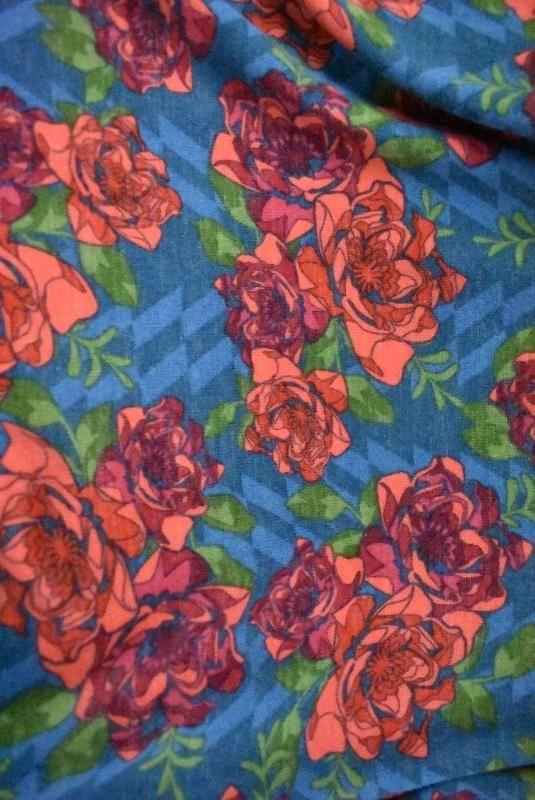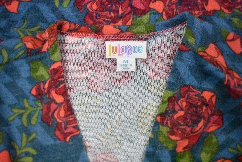 LuLaRoe "Joy" Long Duster Cardigan Vest size Medium. Blue Background w/ Pink/Red Flowers