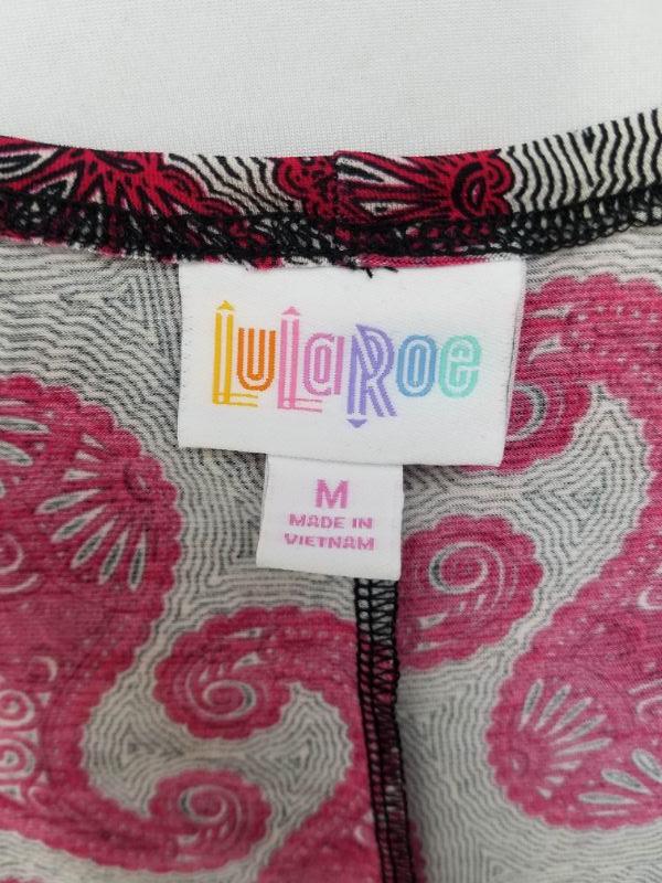 LuLaRoe Lindsay Cardigan Coverup, Women's Size M, Black/White/Maroon Paisleys