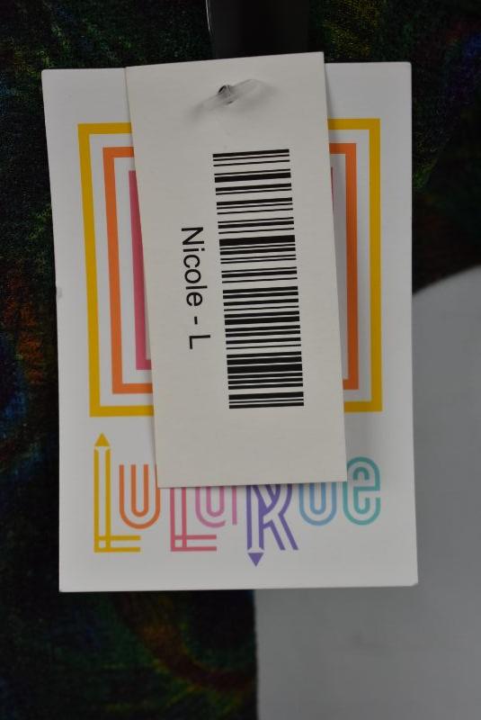 LuLaRoe Nicole Dress, Peacock Design. Stretchy Size Large - New