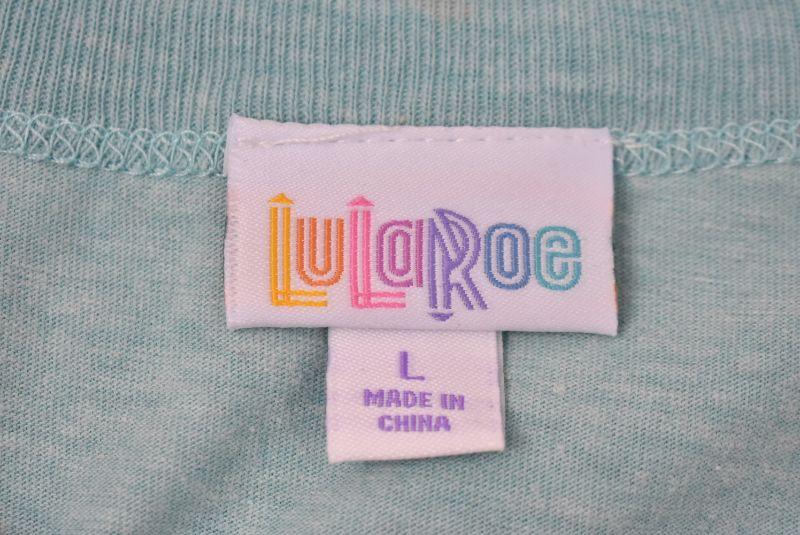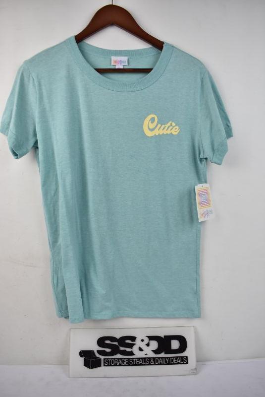 LuLaRoe Olivia T-Shirt, Aqua with Yellow "Cutie" Size Large - New