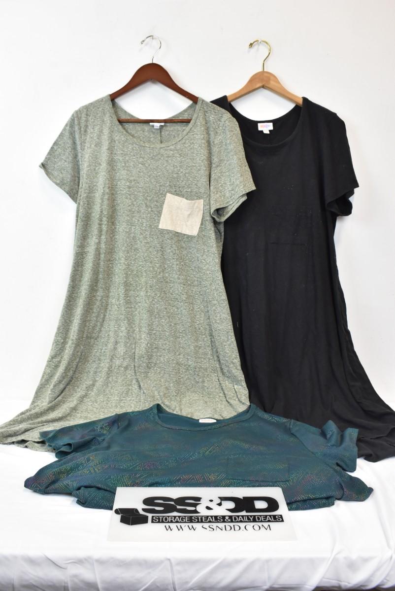 LuLaroe qty 3: "Carly" style dresses, size 3XL, black dress shows more wear