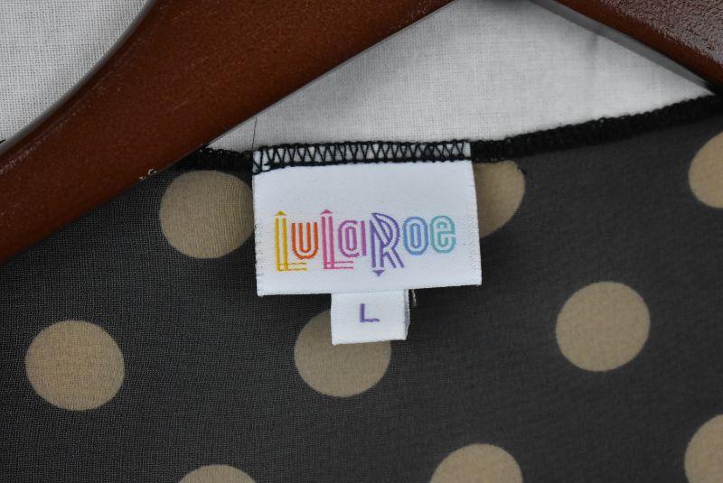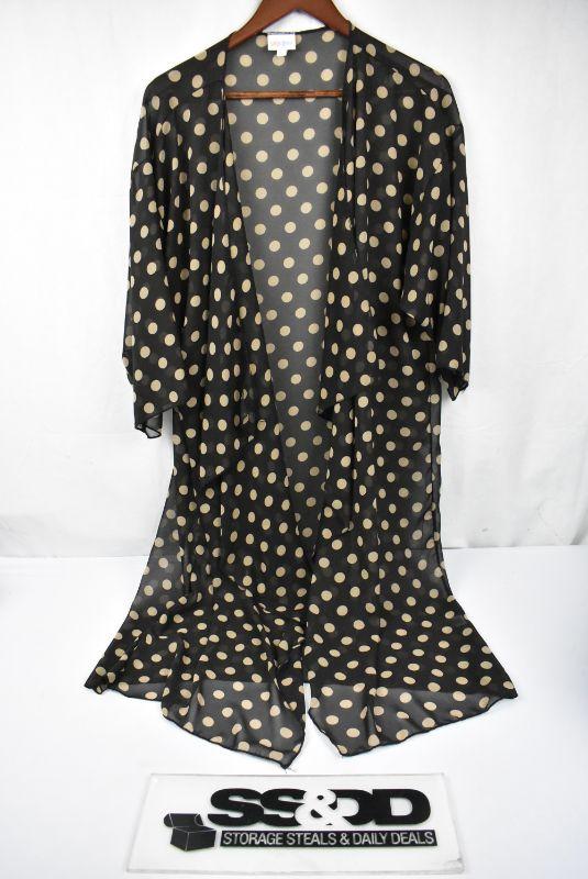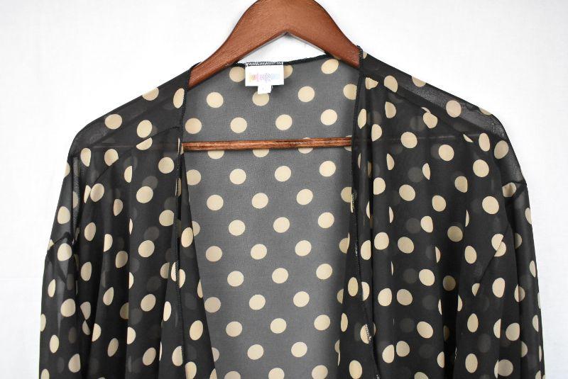 LuLaRoe Shirley Sheer Coverup Kimono, Brown with Brown Polka Dots, Size Large