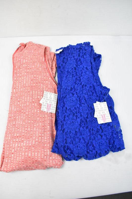 2 Women's Duster Length Vest Cardigans "Joy" by LuLaRoe size Medium: Red/White Ribbed & Blue Lace - New