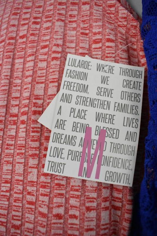 LuLaRoe size Medium: Red/White Ribbed & Blue Lace - New