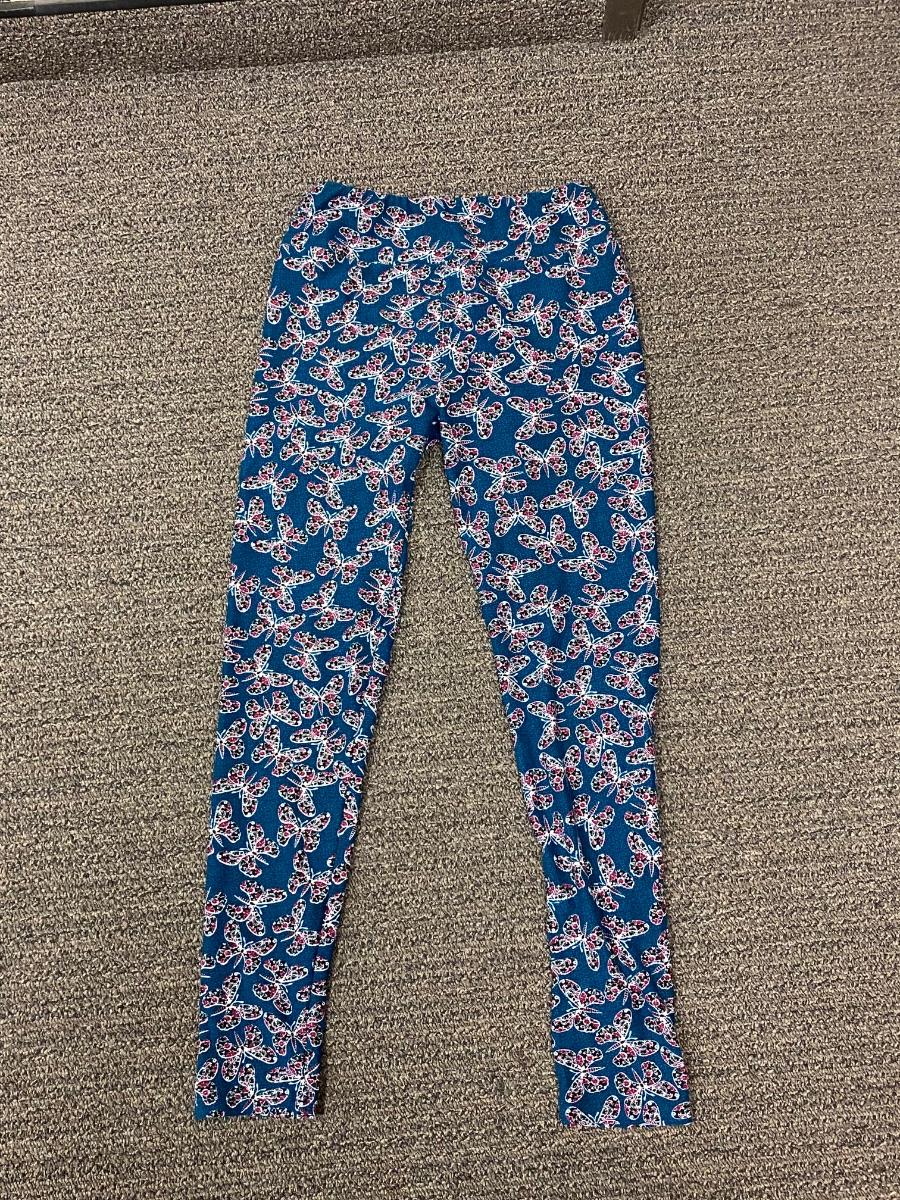 Pair of super soft LuLaRoe leggings. A teal green color with butterflies. Tag says one size, not sure how much they stretch maybe small to large.