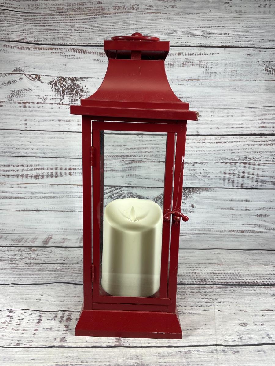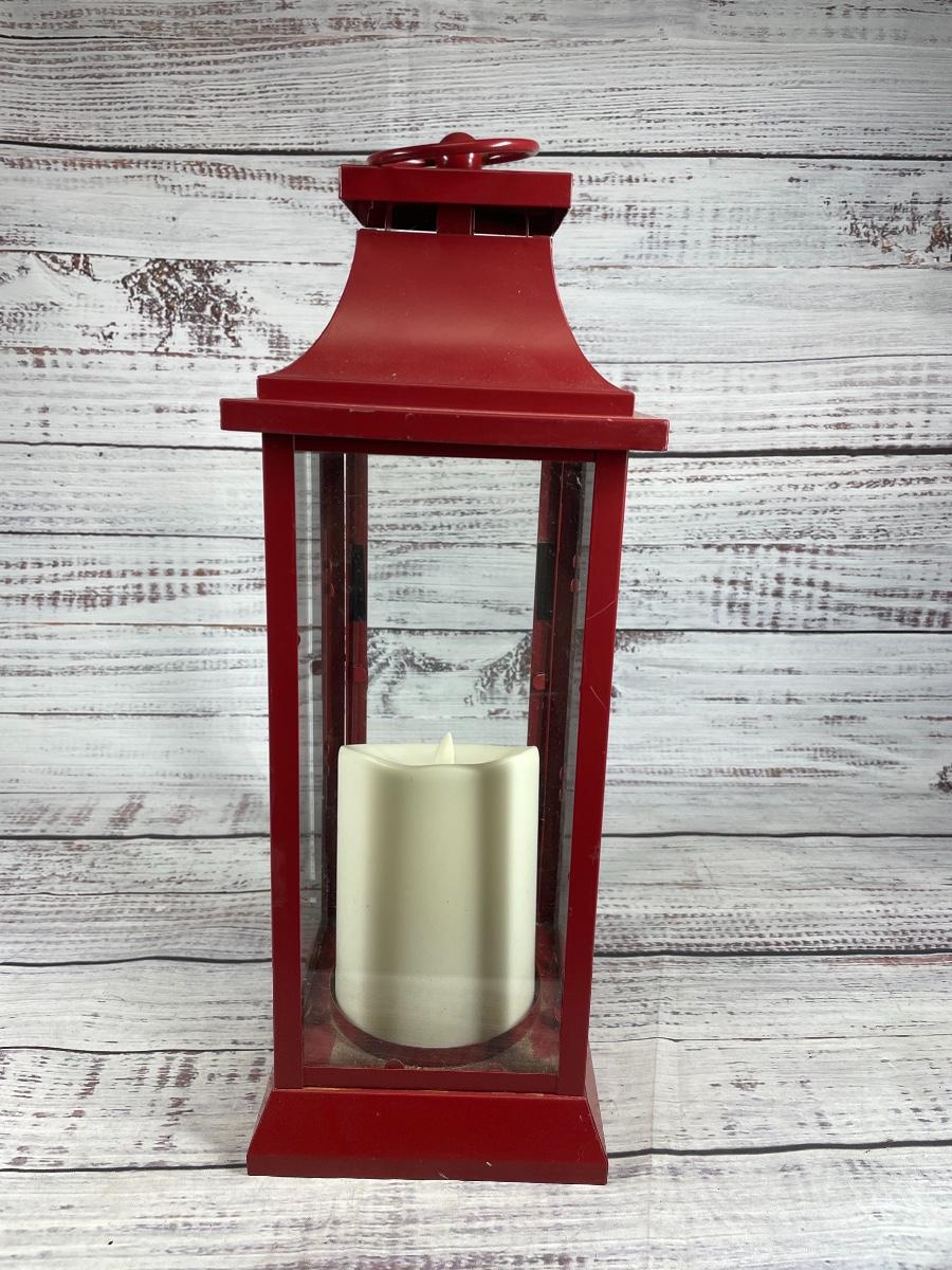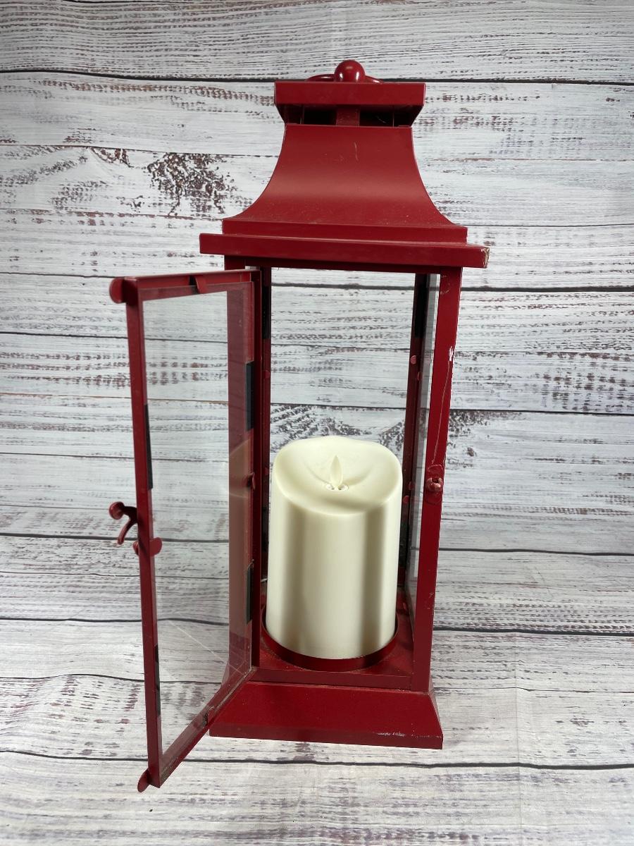 Luminara Red Metal Lantern with Faux Battery Op Candle