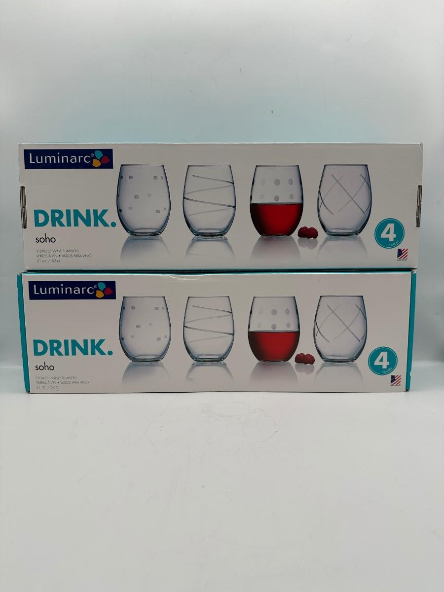 Luminarc 8-Piece Stemless Wine Glass Set - New in Box
