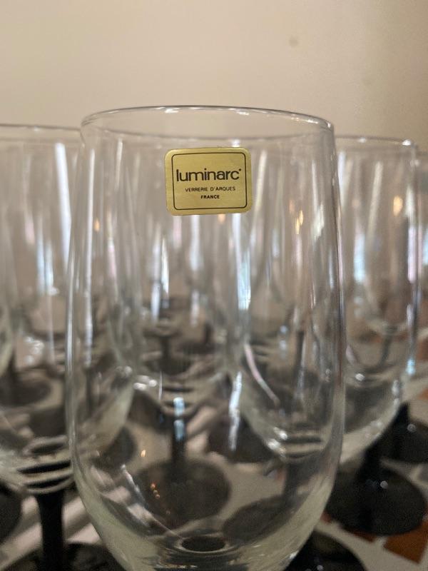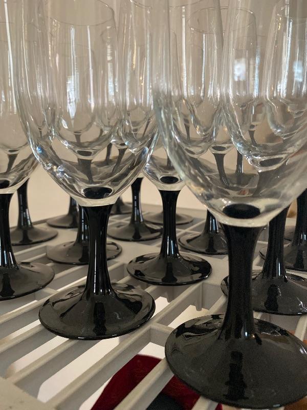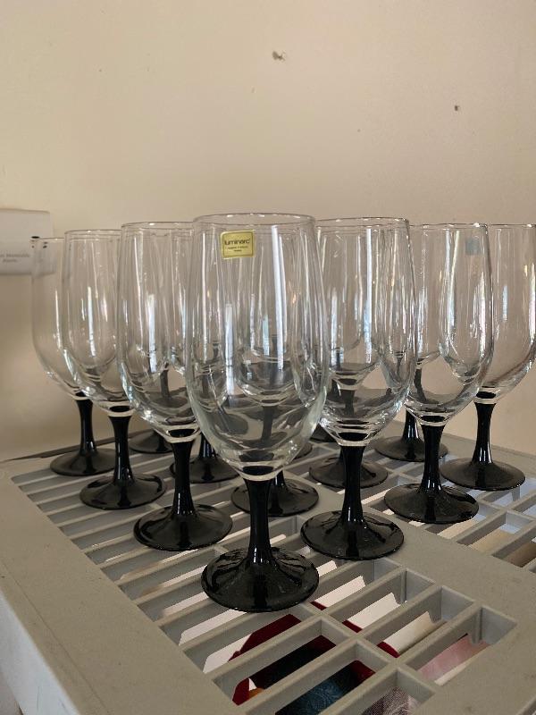 16 Luminarc Black Stem Goblets. Good condition. No cracks or chips.