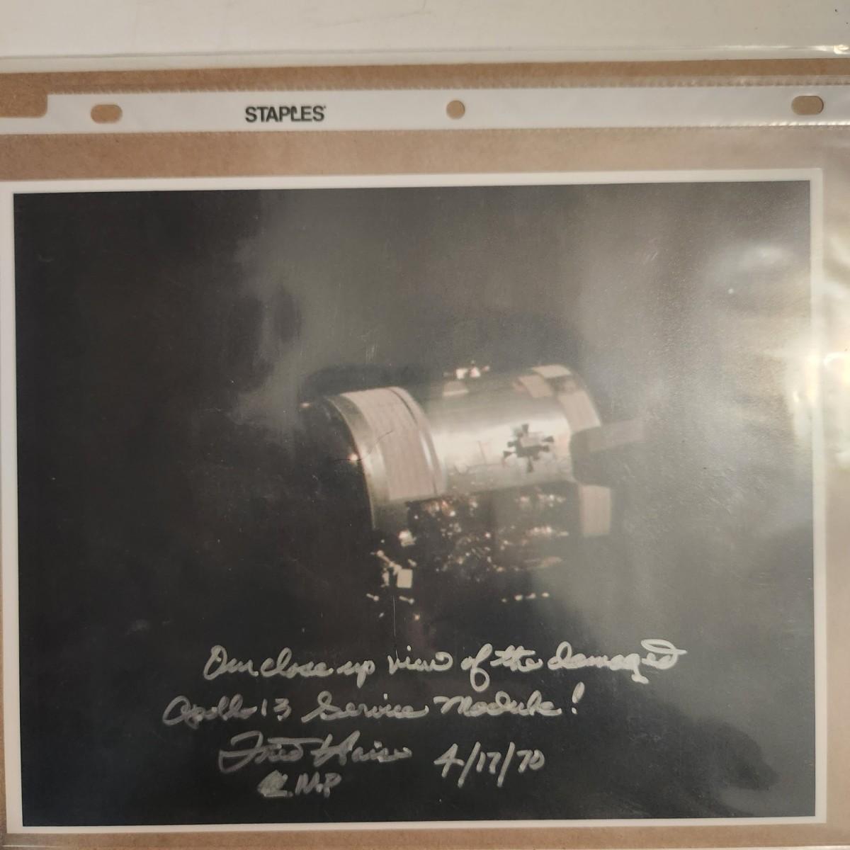 Our close up view of the damaged Apollo 13 service module. Fred Haise.