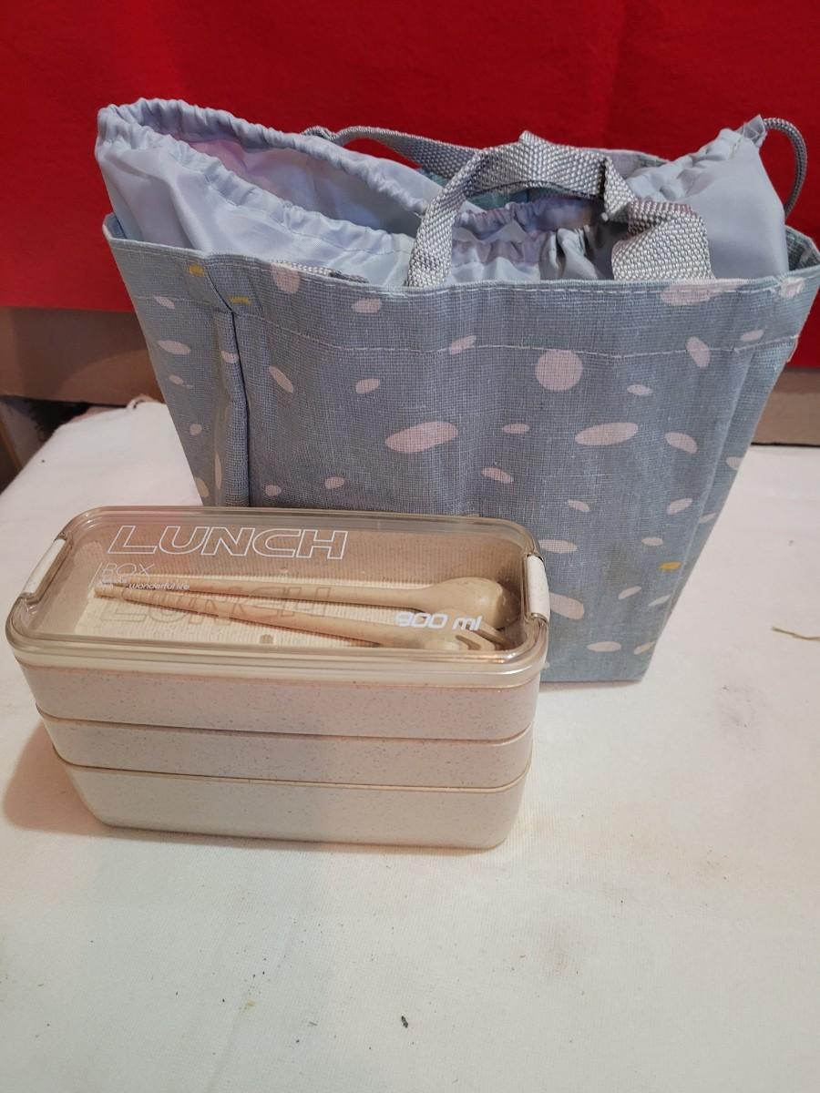 Lunch bag with stackable containers and utensils.