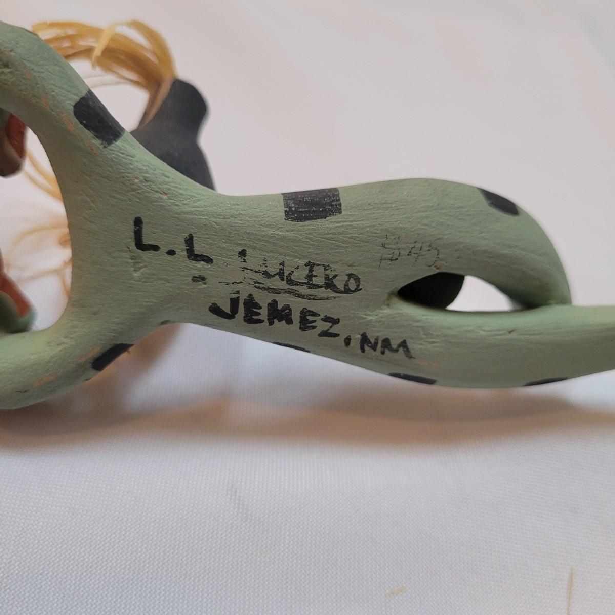 Two clay sculptures or figurines that appear to be by native artist Lupe Lucero Loretto.