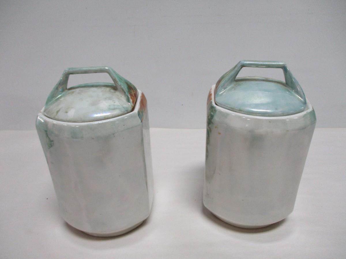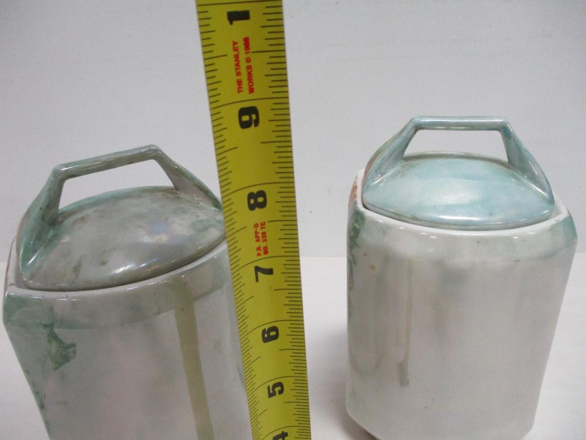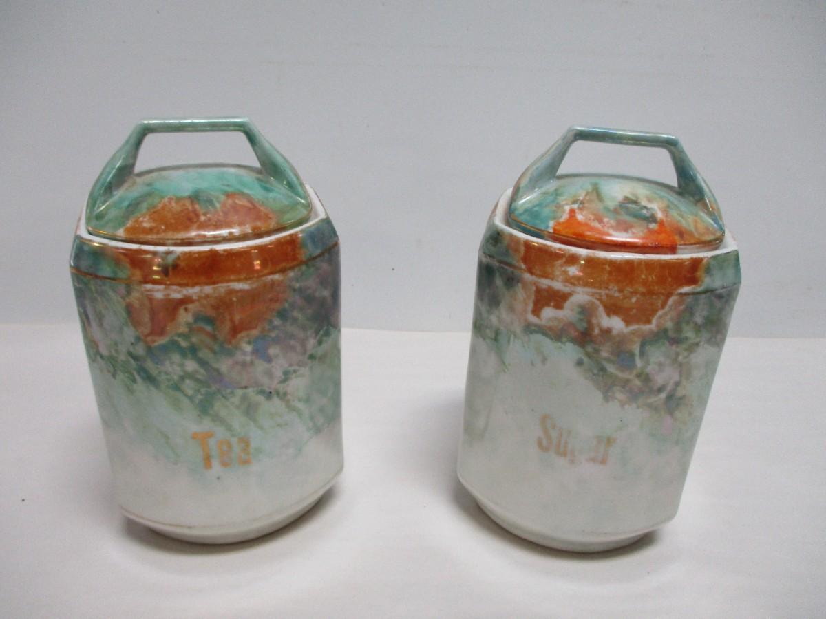 Lusterware White Block Czechoslovakia Tea & Sugar Containers