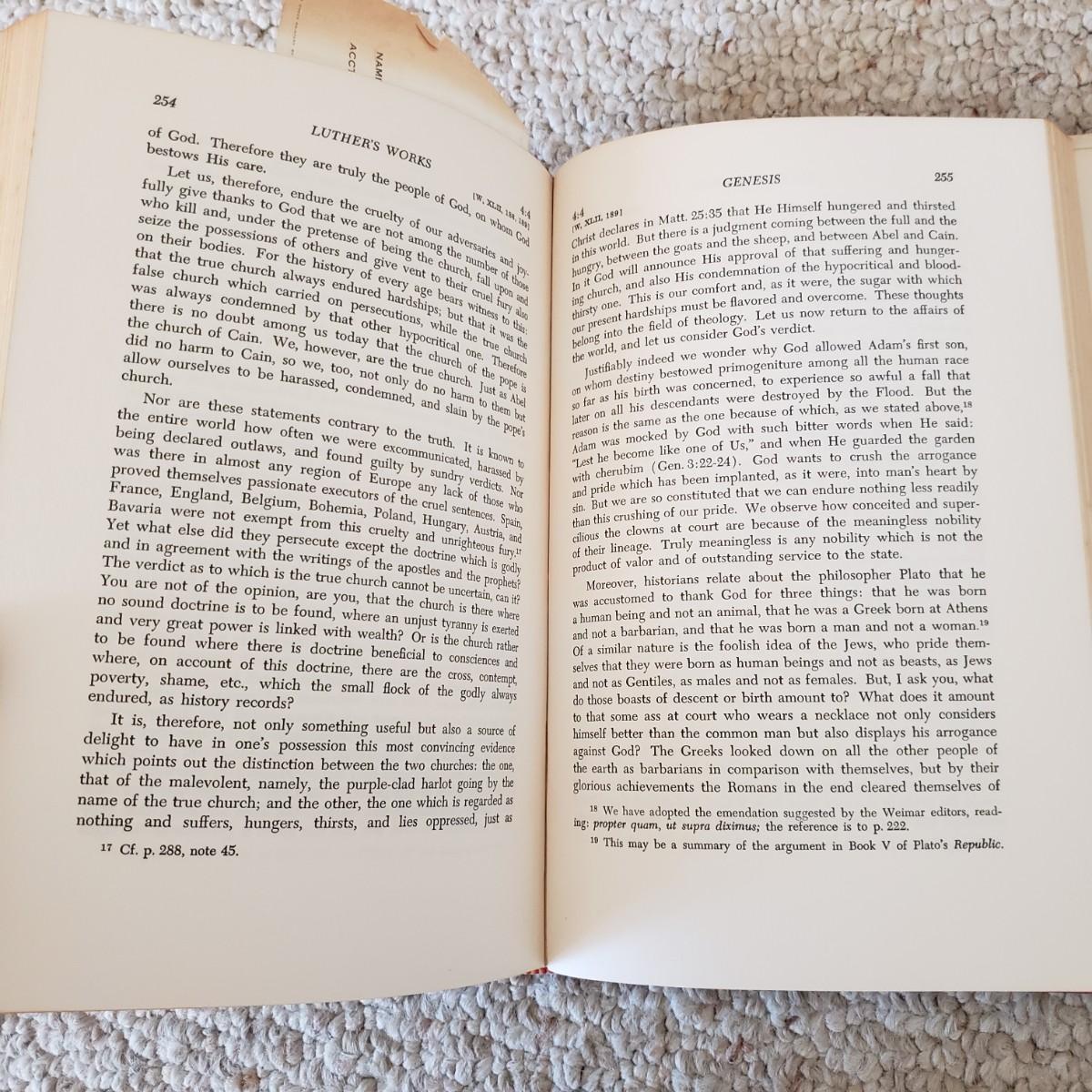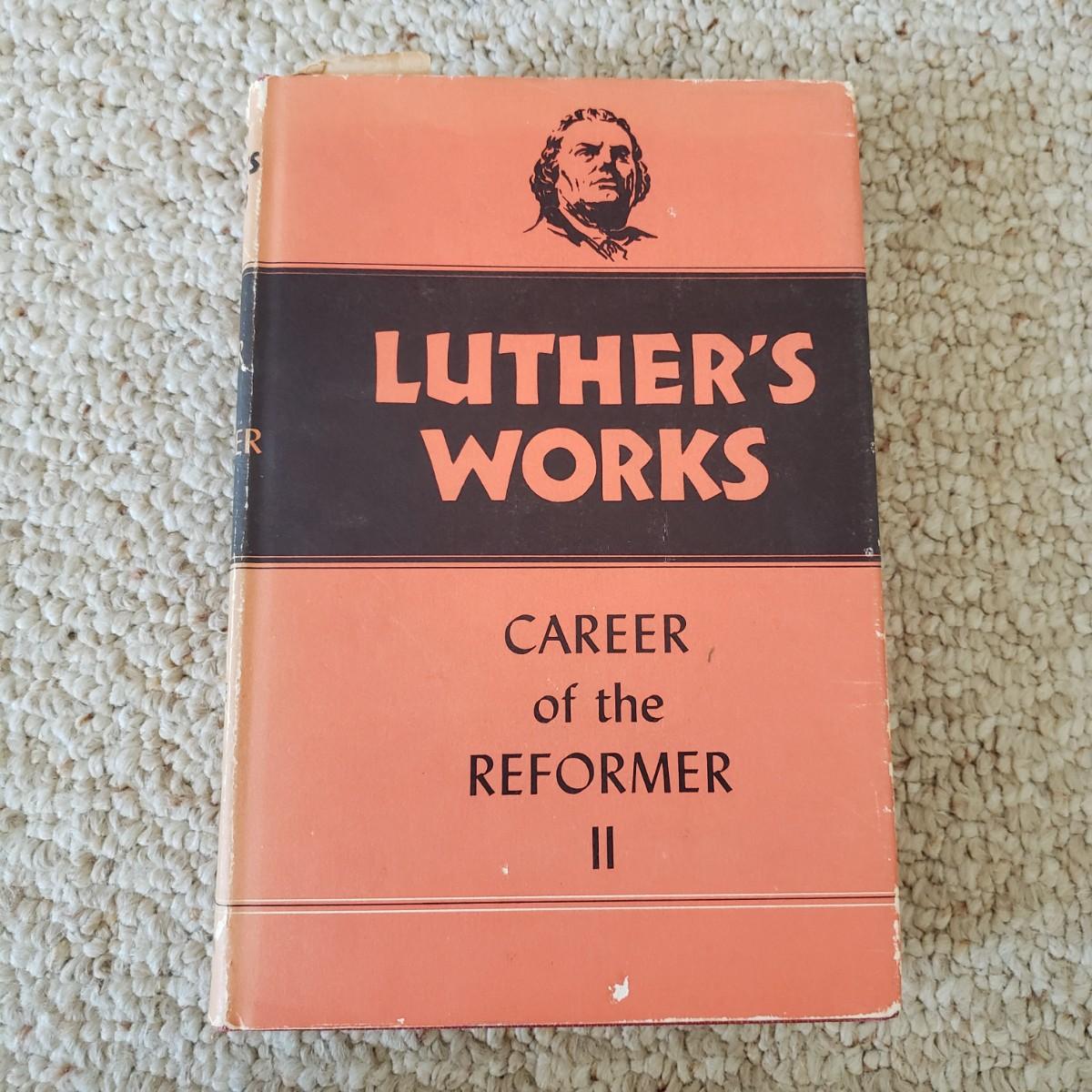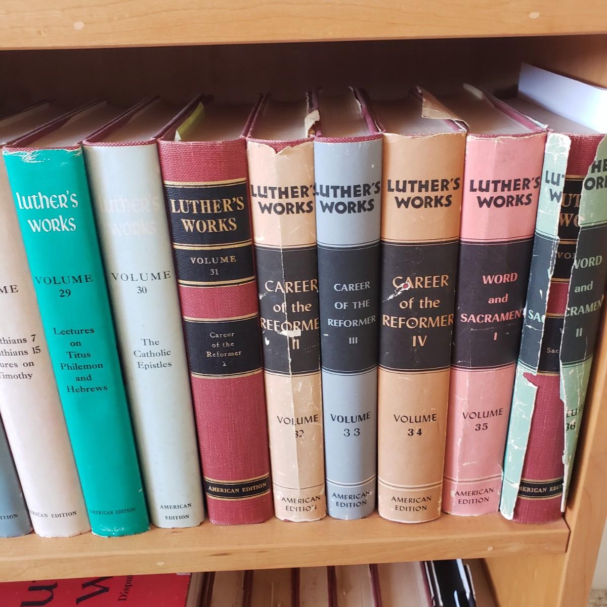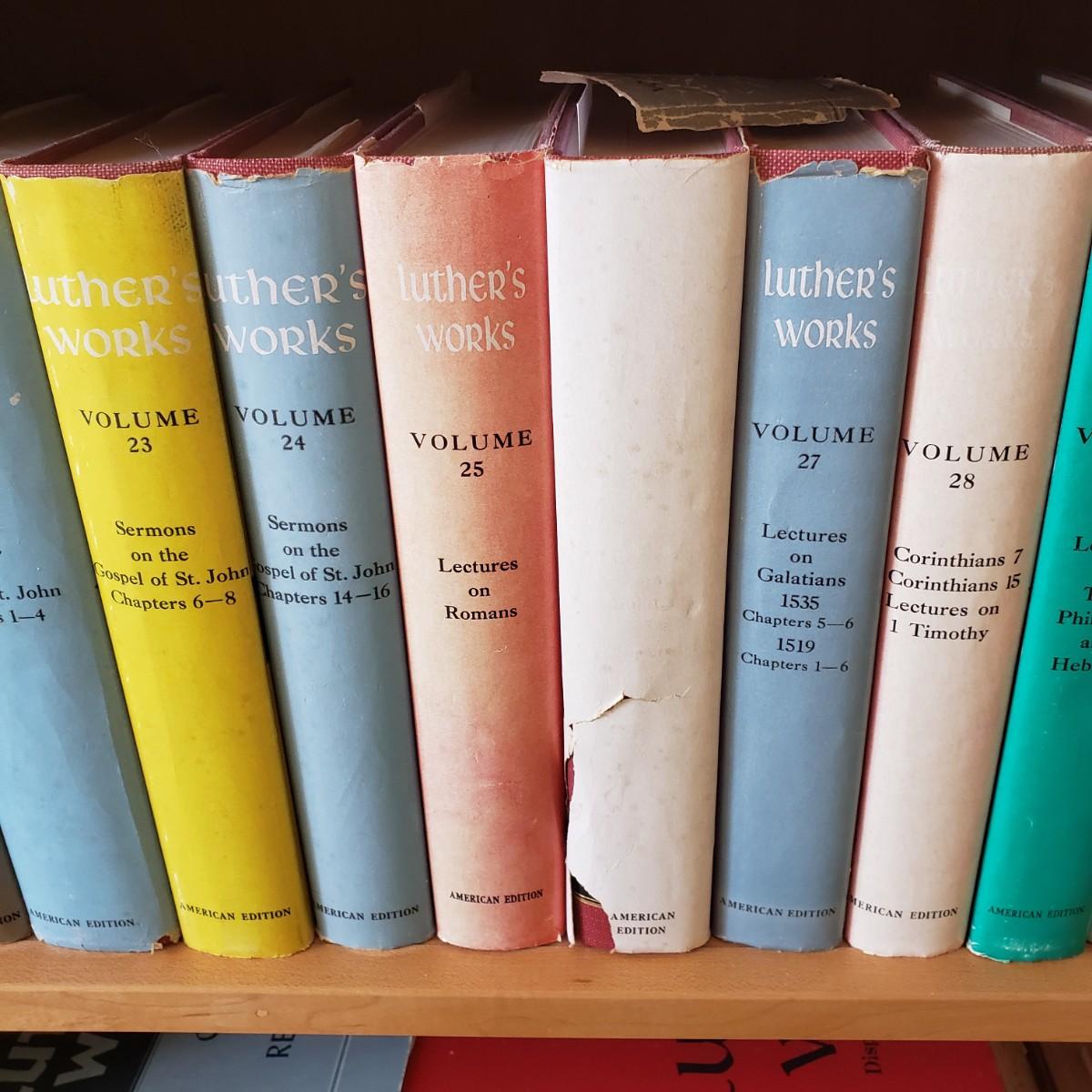 This is Luther's Works Volume 1-54. There is also volume 69 and 73. The books appear to be in good condition, yet some covers are worn.
