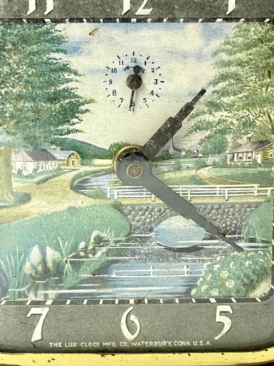 This is a beautiful clock. It is not currently working, I was told these are easy to have fixed and it’s usually a pretty simple fix. You could probably YouTube it. It was so pretty I had to include it in the sale. Slight scratches on the face cover. Get this vintage beauty!