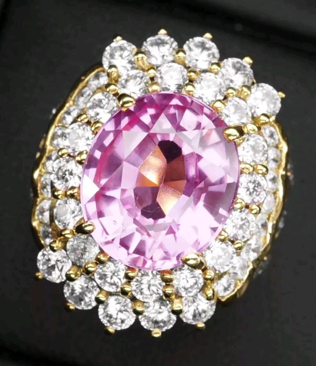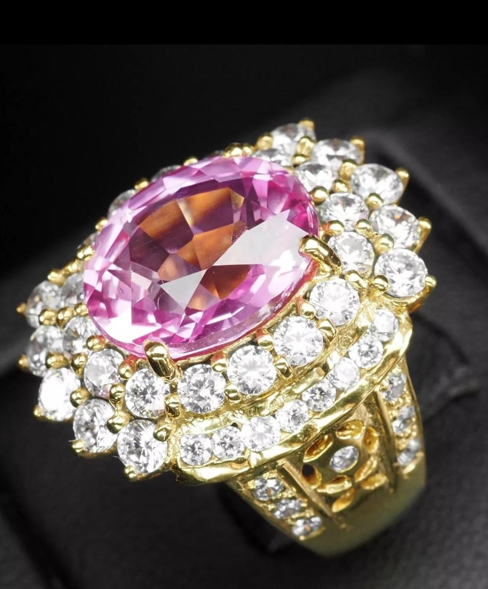 Luxurious Fuchsia Pink Tourmaline 9Ct 925 Sterling Silver 24K Gold Vermeil Ring