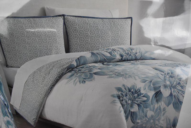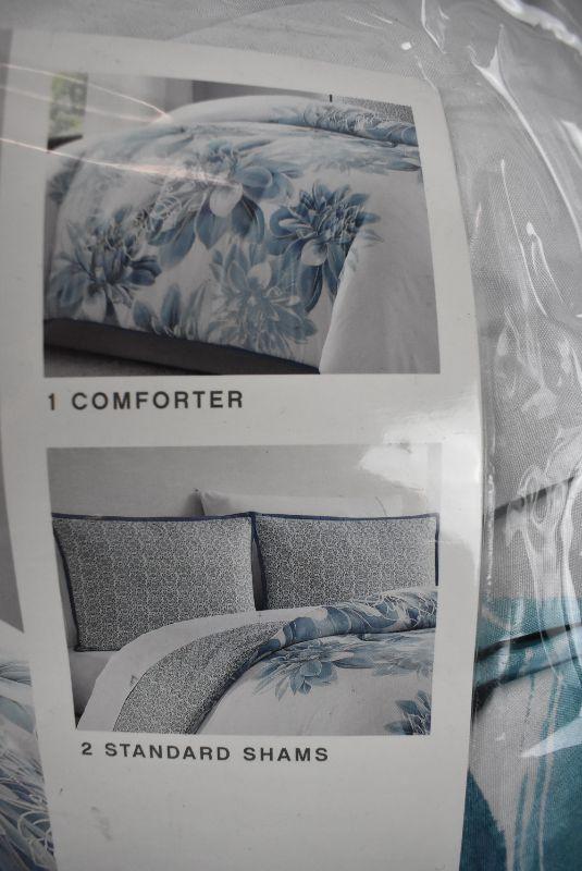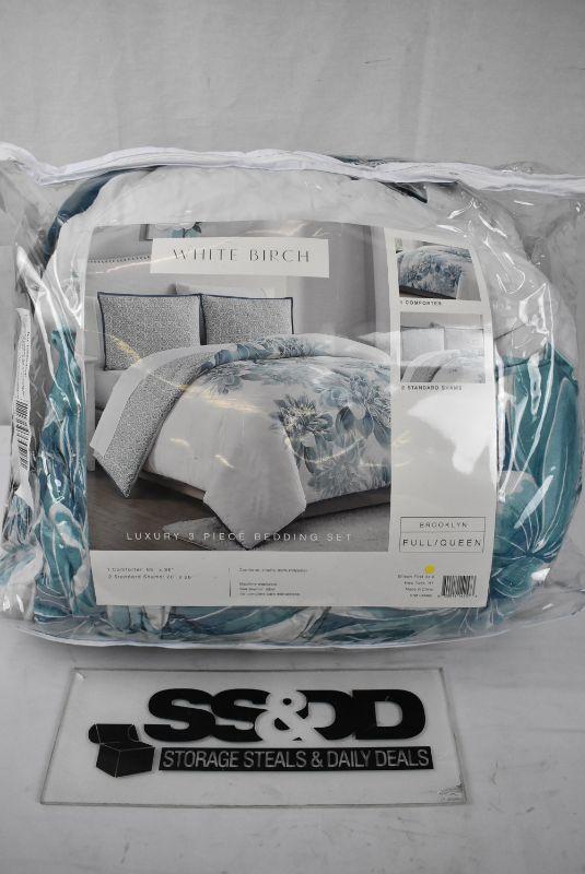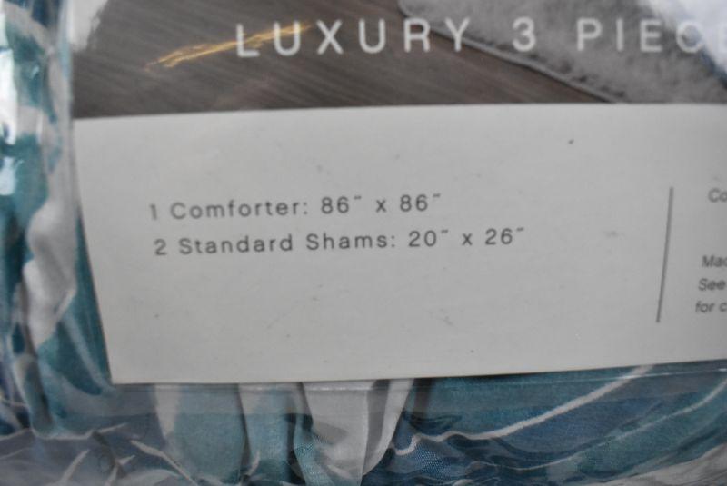 Luxury 3 Piece Comforter Set by White Birch. Brooklyn Aqua/White Floral, Full/Queen. Used, Complete