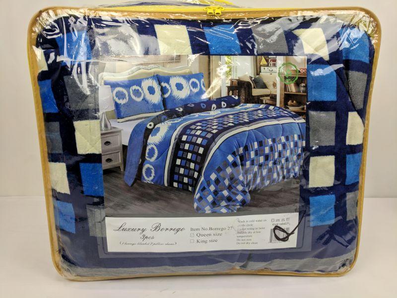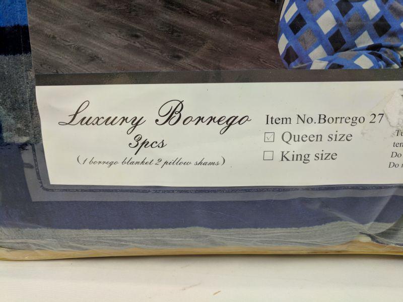 Luxury Borrego 3 PCS, Blue, Blanket & 2 Pillow Shams - New