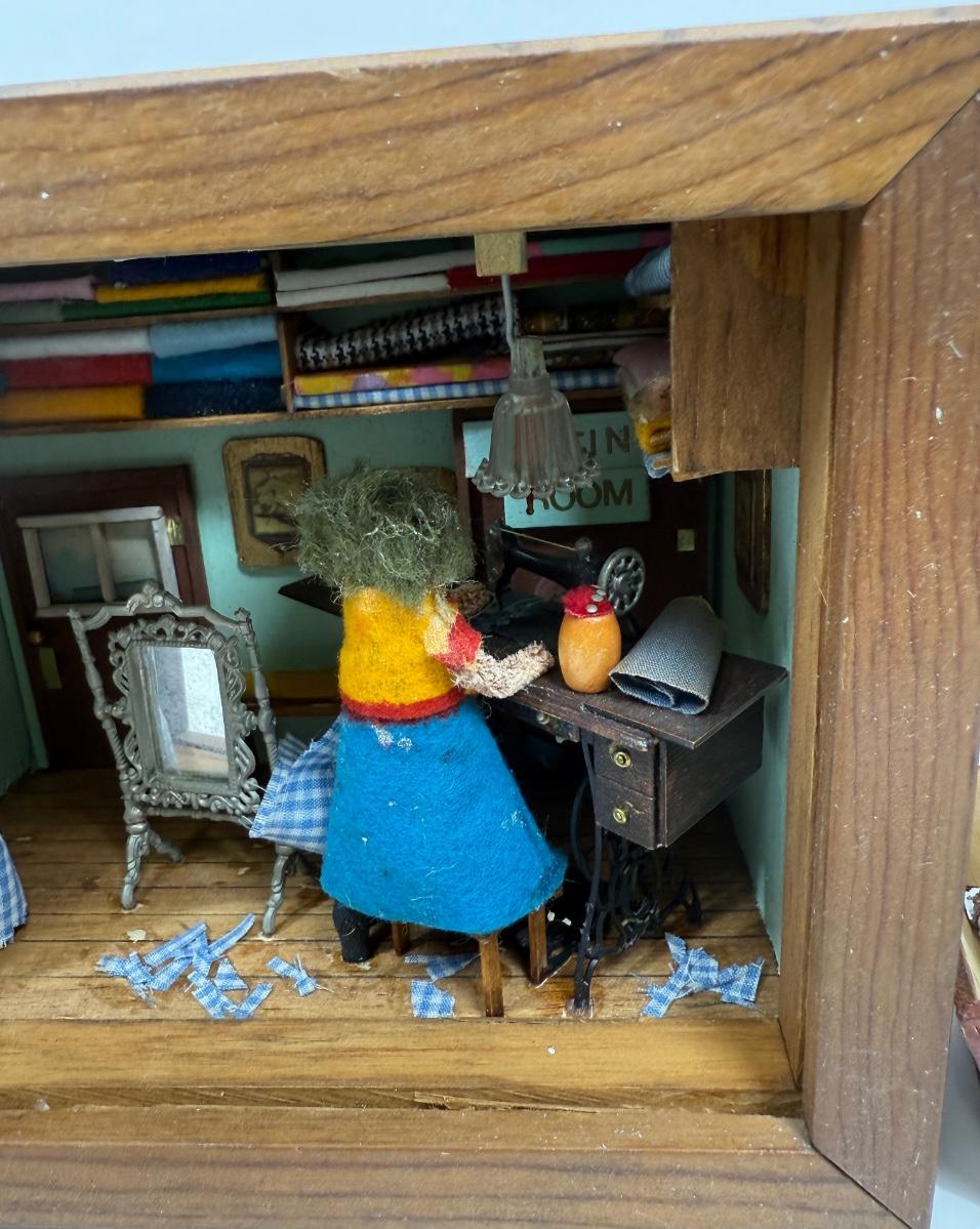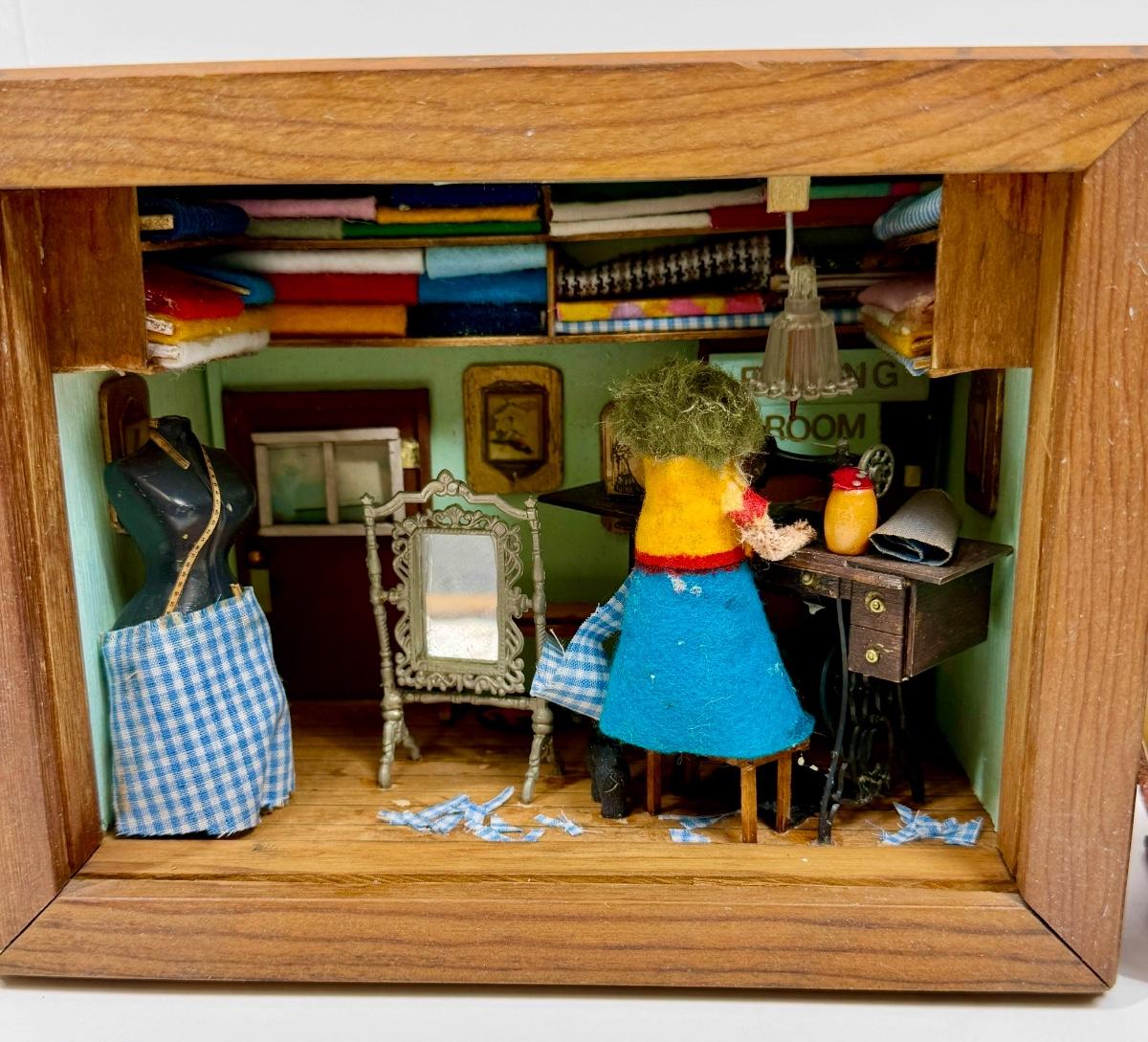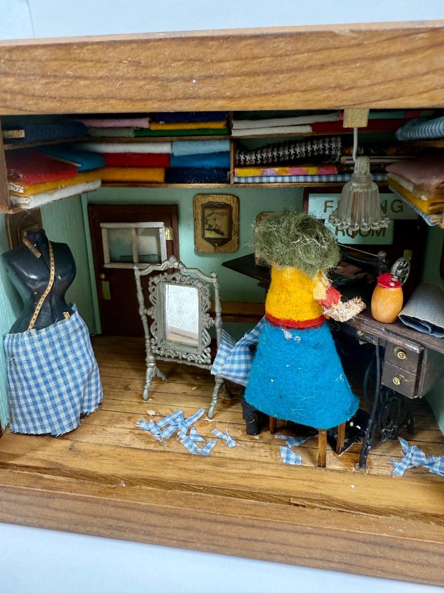 Sewing Room or Tailor Homemade 3D Miniature scene setting display with light