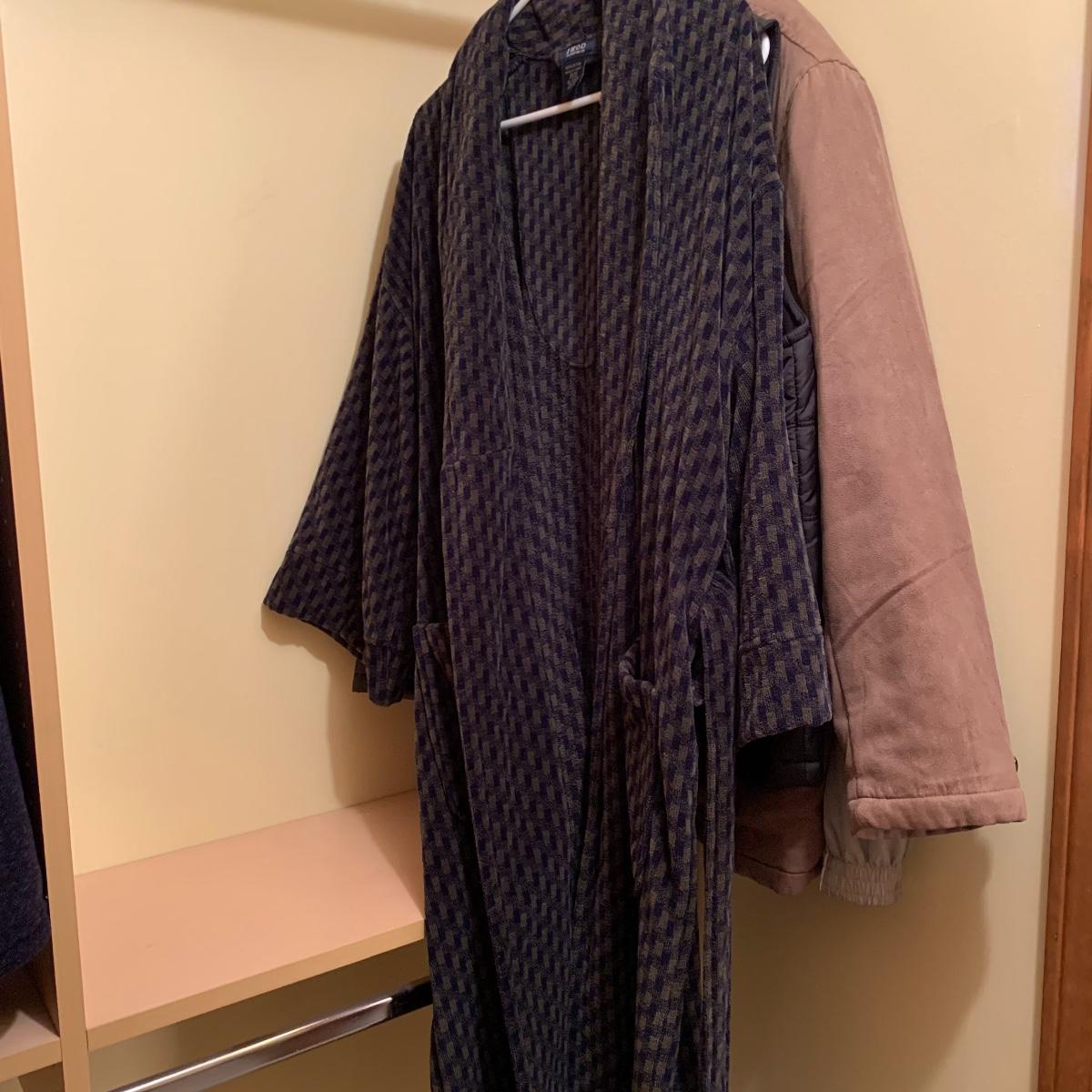This lot includes a variety of nice quality men’s clothing and outerwear and one pair of shoes. The shoes are size 12 M Sperry Top Sliders. They are used, but are in good condition. There is one pair of Haggar brand black slacks that are size 36x31. There are three white button down shirts and one Quicksilver t-shirt. There is a Helly Hansen coat with tons of pockets and a down flow mechanical venting system. It’s a little dirty on the surface, but likely washable and otherwise in very good condition. There is also a Geoffrey Beane coat that is soft micro suede. It feels cushioned and like it should keep you quite warm. There is a zip-up hoodie, a fleece sweatshirt, two vests, one windbreaker sport jacket, and a soft plush IZOD robe. Local pickup only.