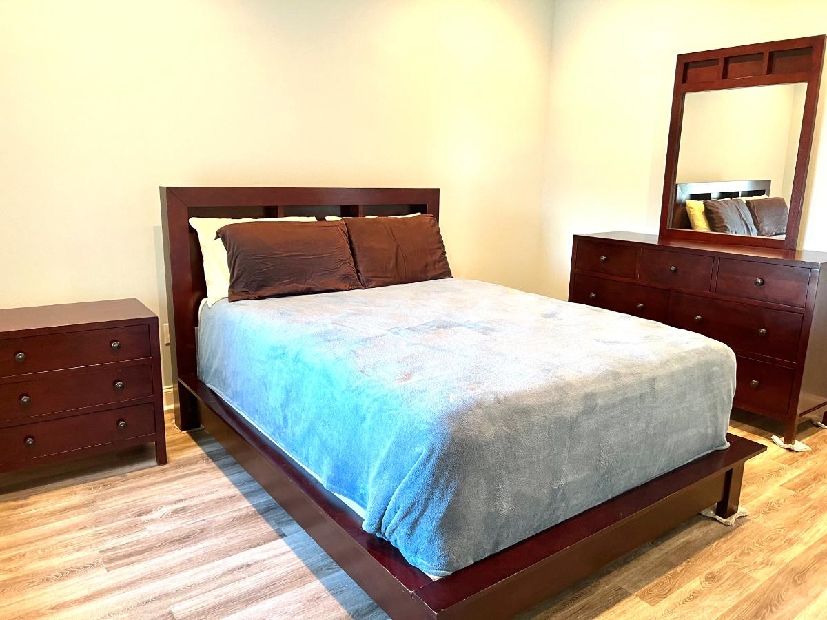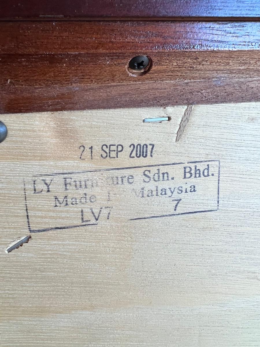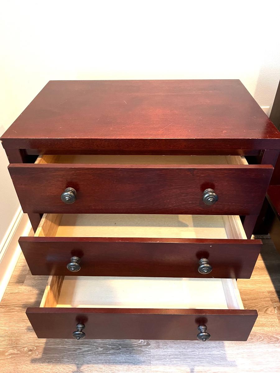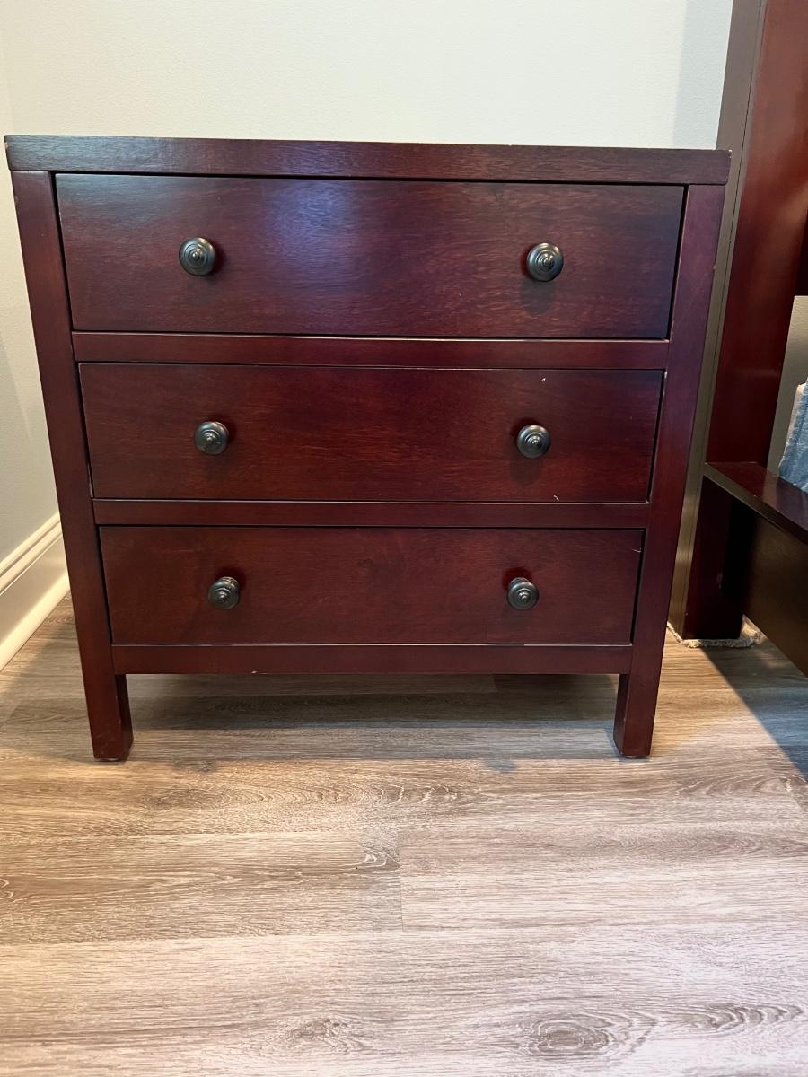 LY Furniture Cherry QUEEN Bedroom Set- Queen Bed, Night Stand and Triple Dresser. Nightstand Measures 28 inches wide, 28 inches tall and 18 inches deep. Triple Dresser measures 60 inches wide, 37 inches tall and 20 inches deeps . Mirror measures 34 inches wide and 46 inches tall. **Beautyrest mattress does have a stain on the bottom from a spill and a few other stains. Mattress has been sprayed with OdoBan and disinfected. Winning bidder may leave the mattress set if they choose.
