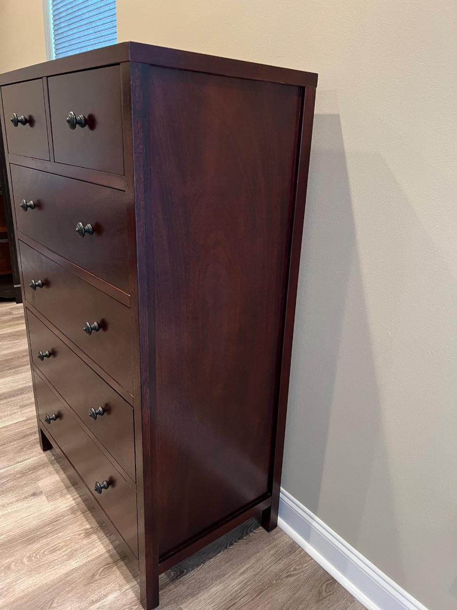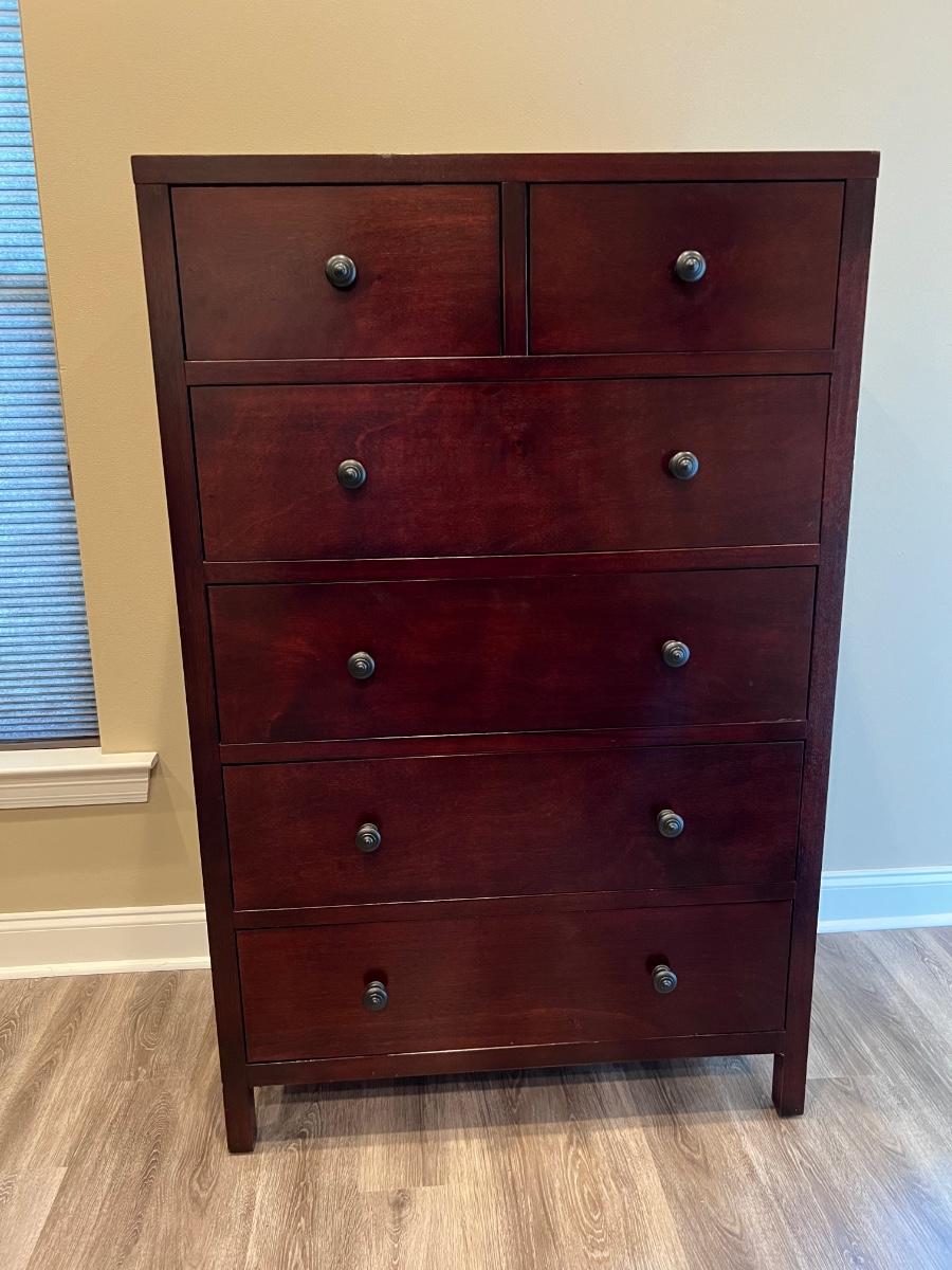 LY FURNITURE Tall 6 Drawer Dresser Measures 56 inches tall, 36!inches wide and 56 inches deep.