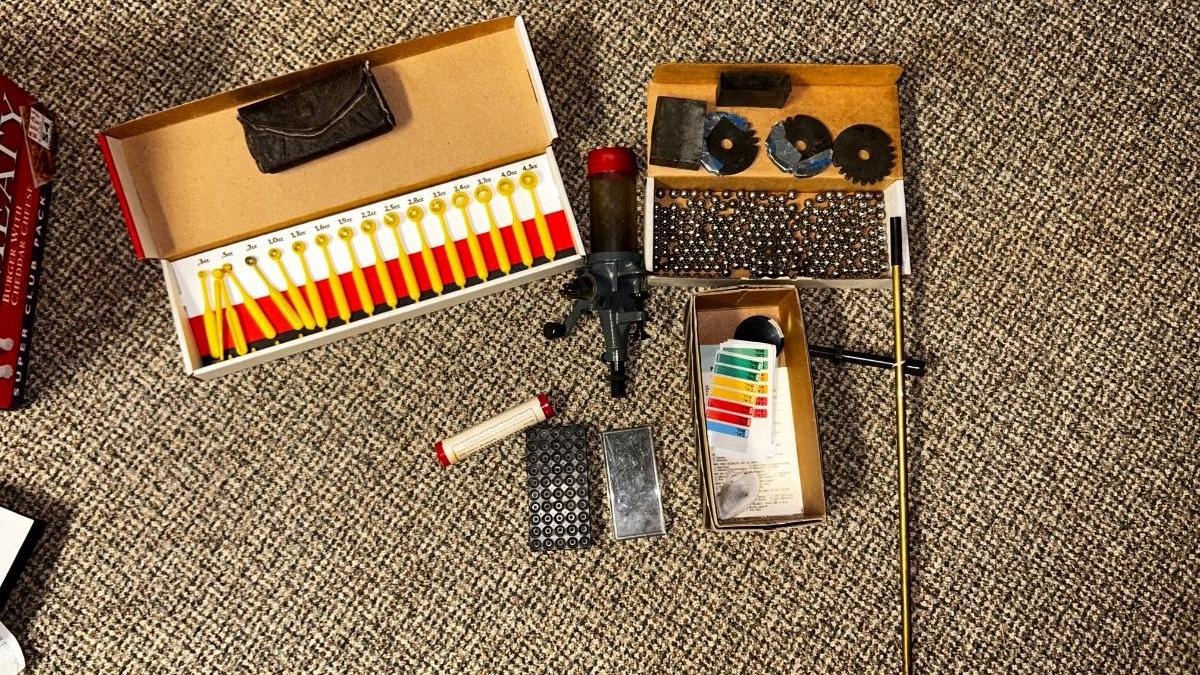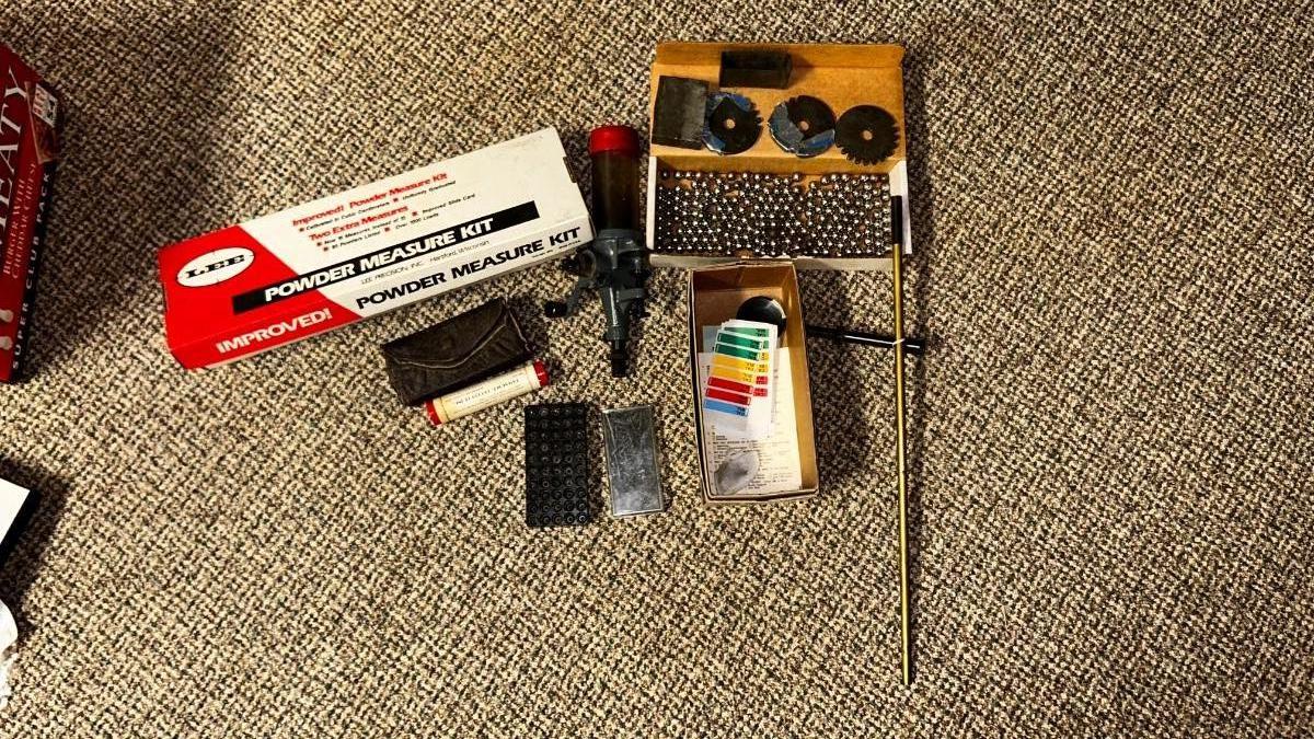 LYMAN NO. 55 BENCH-MOUNT POWDER MEASURE FOR RELOADING AMMUNITION, LEE POWDER MEASURE KIT BOX OF 11mm (7/16”) STEEL BALLS AND MORE