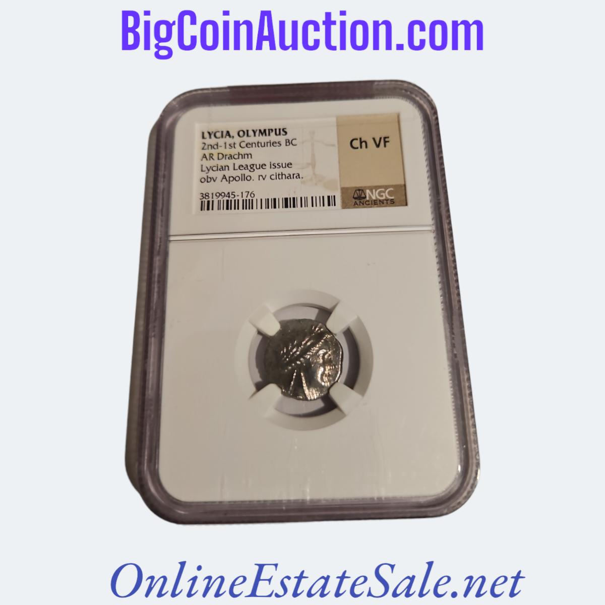 AR DRACHM LYCIAN LEAGUE ISSUE OBV APOLLO RV CITHARA CH VF