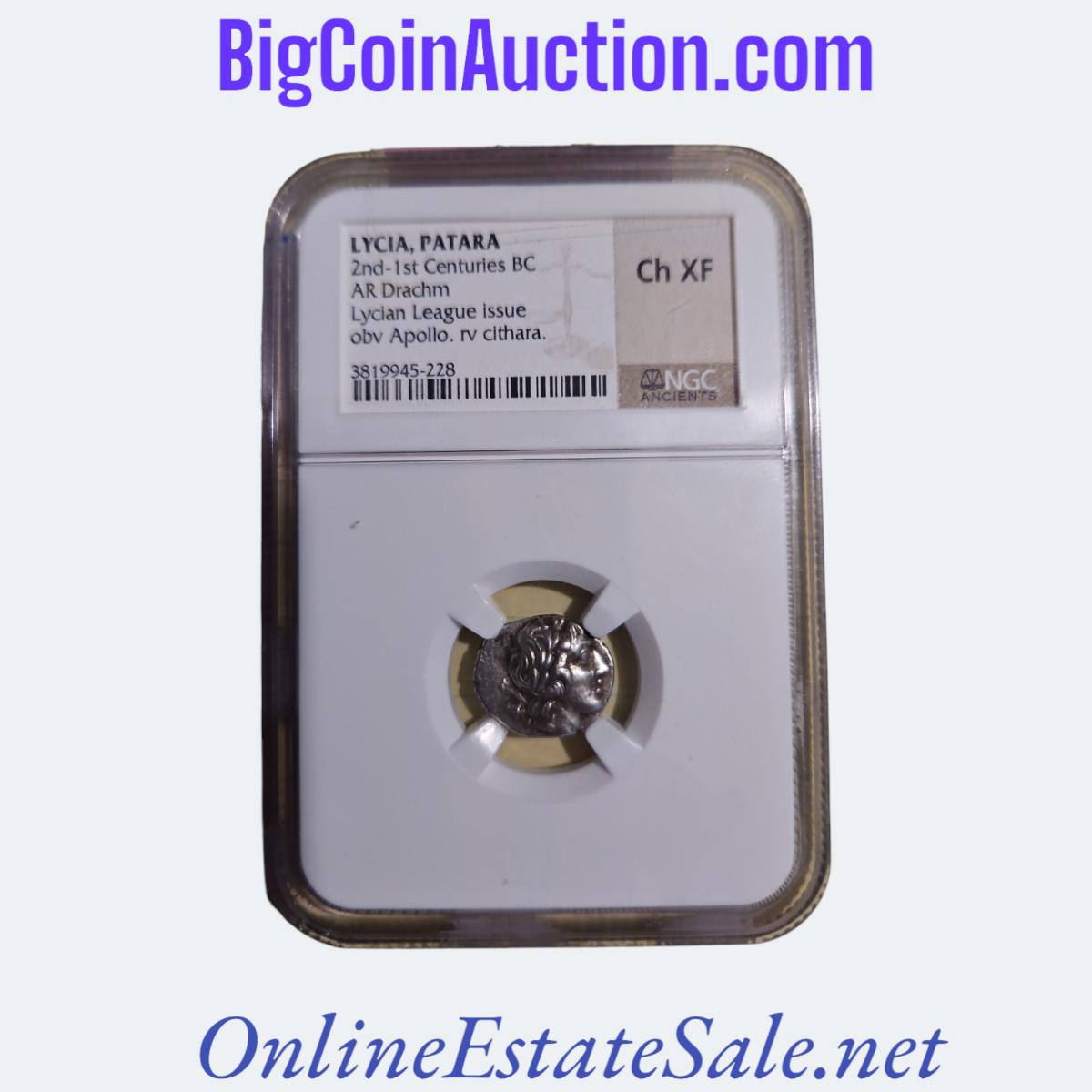 AR DRACHM LYCIAN LEAGUE ISSUE OBV. APOLLO. RV CITHARA (CH XF)