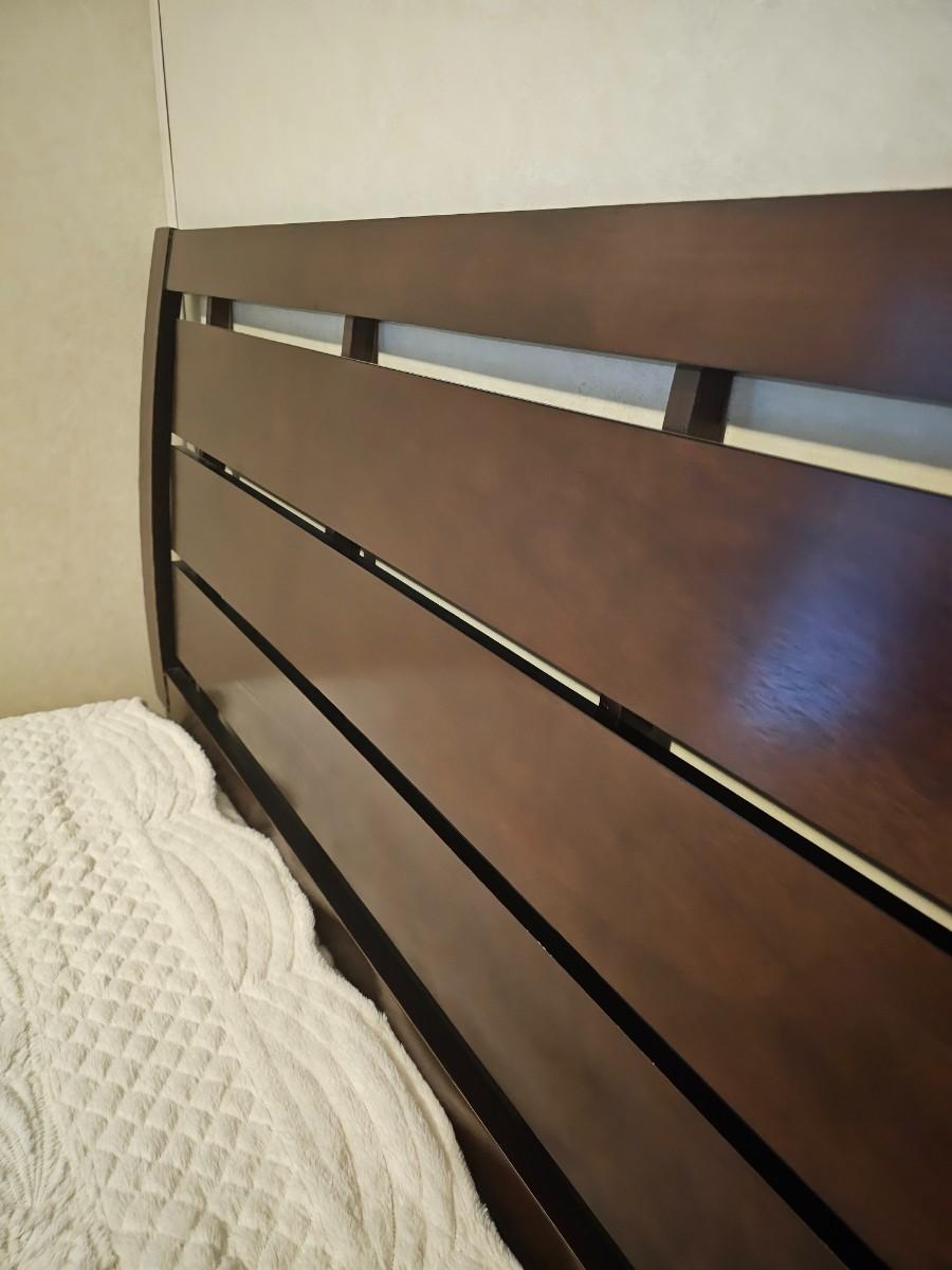 LYKE Home Laurel Cherry Bed. This versatile panel bed is constructed using a combination of solid wood, manufactured wood, and wood veneers includes a remote control adjustable bed frame.