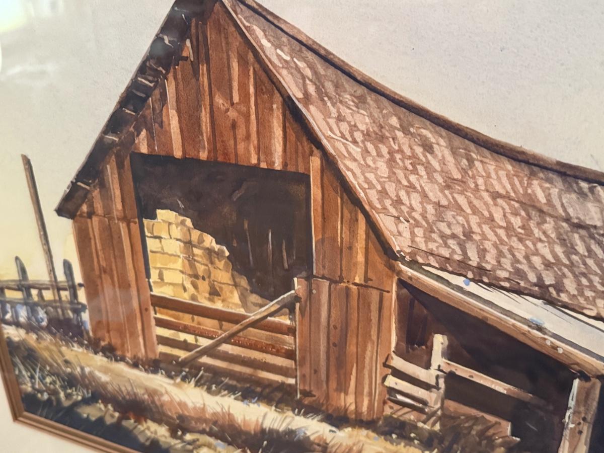 Lyle Ball Original Framed Watercolor of Barn Scene