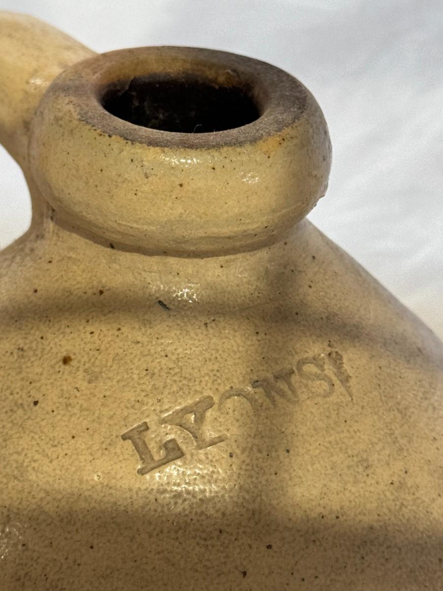 LYON'S primitive salt glaze stoneware jug. Mid 19th century / marked