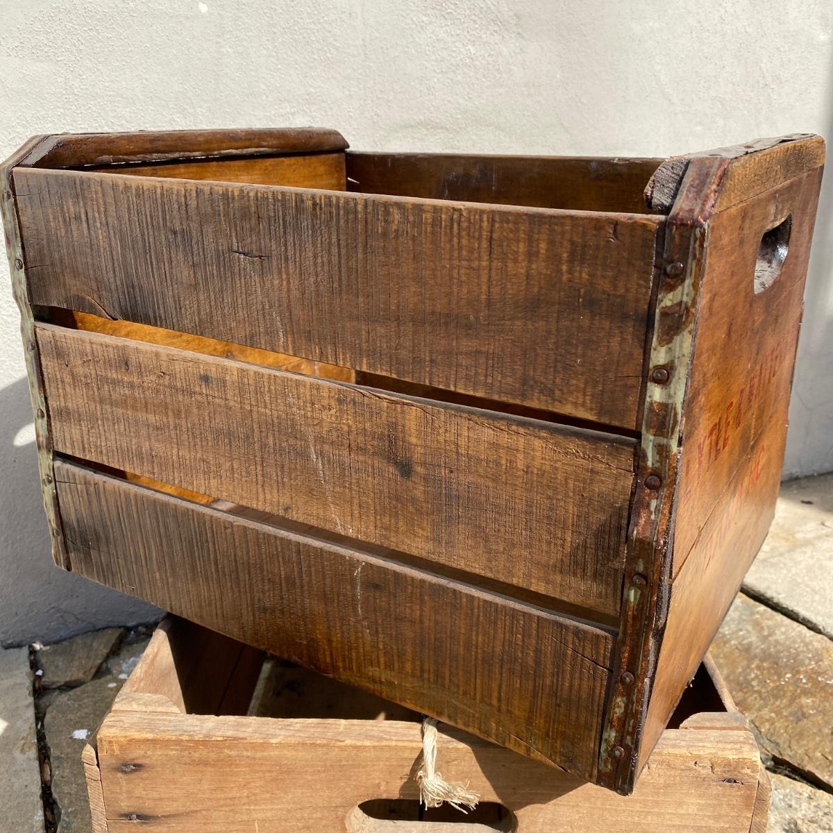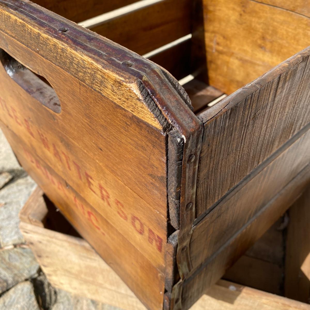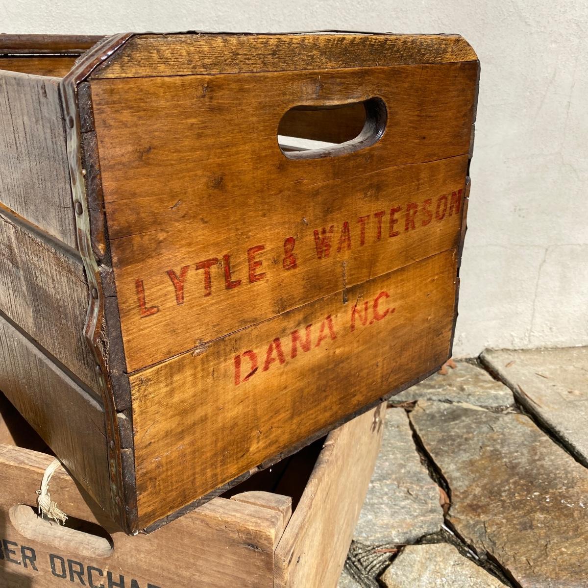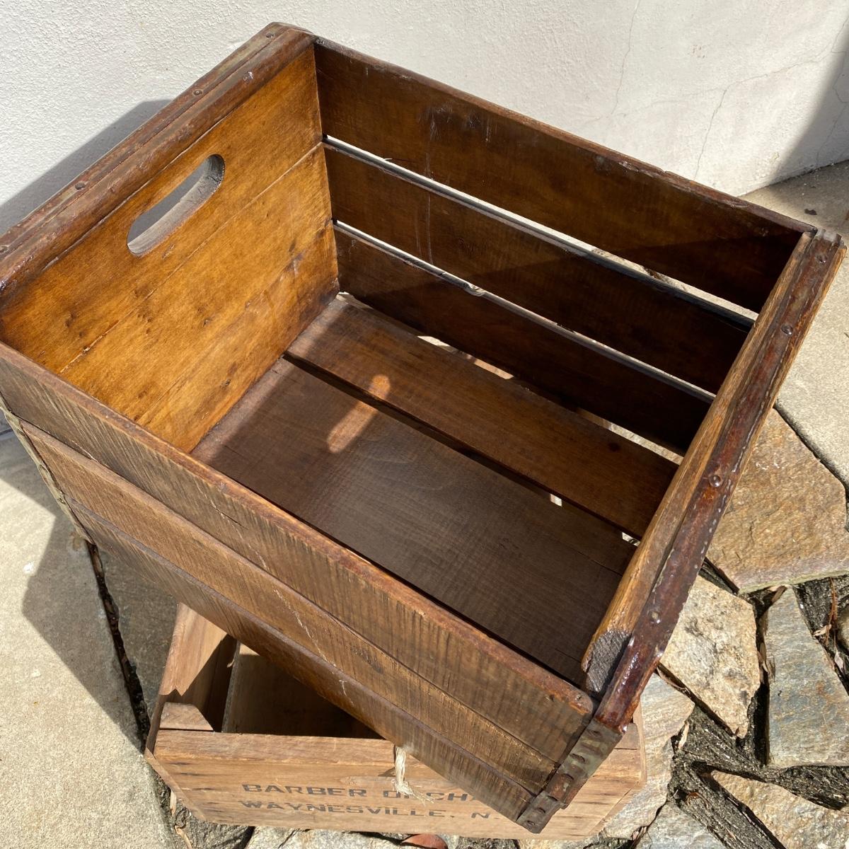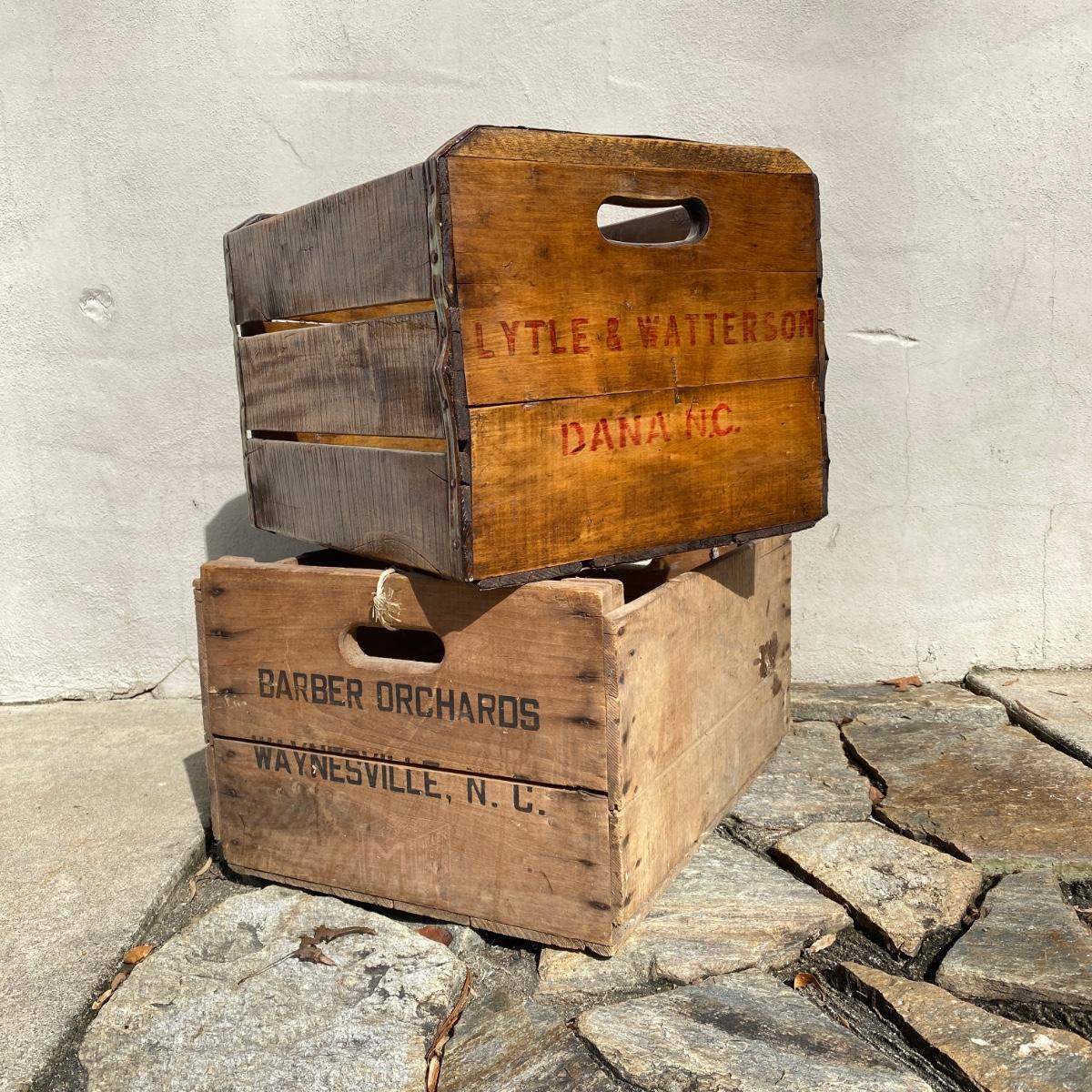 Two great crates for storage or display. Lytle &Watterson has metal edges and has been stained. Great condition. Measures 28” x 15” x 13”tall. The Barber Orchards one is also sturdy and good condition but it has a few blemishes on sides. See pix. Measures 20” x 16” x 11”tall. Local pick up