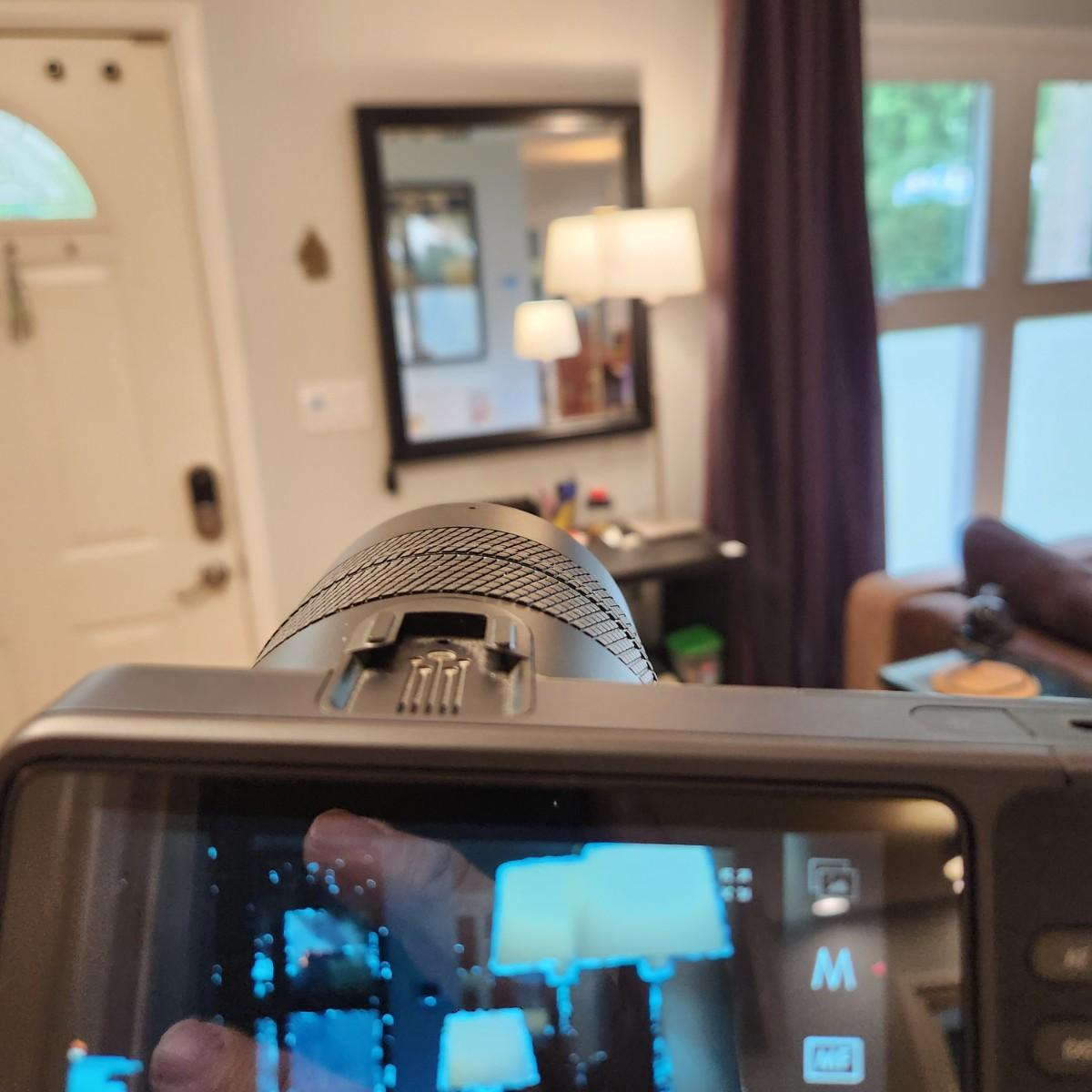 Lytro Button: Compose your pictures in a new way. During image capture, an interactive depth feedback display shows the relative focus of all objects in the frame, allowing composition in three dimensions.