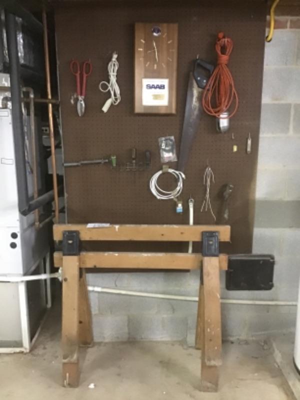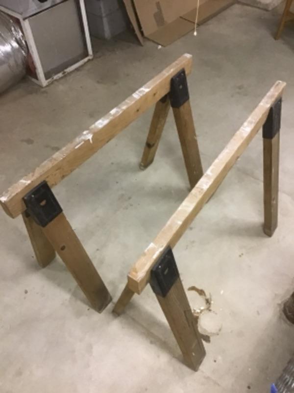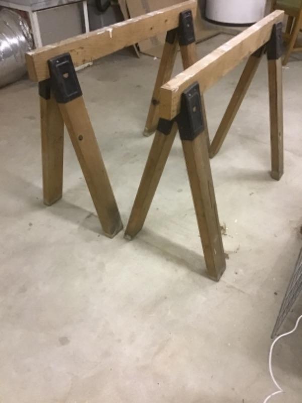 M - 632 Pair of Wooden Saw Horses & Miscellaneous Tools