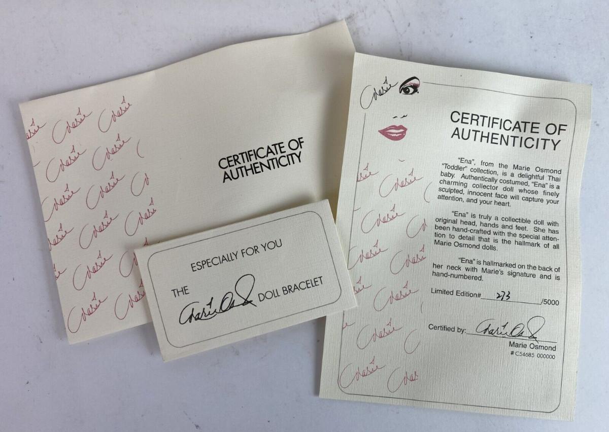 Marie Osmond Fine Porcelain "Toddler" Collector Doll...Hand numbered..Limited edition...ENA...16 inch...Found new in box from a collector's estate...as shown...with COA...#273/5000...Hallmarked on her neck...In Asian garb…