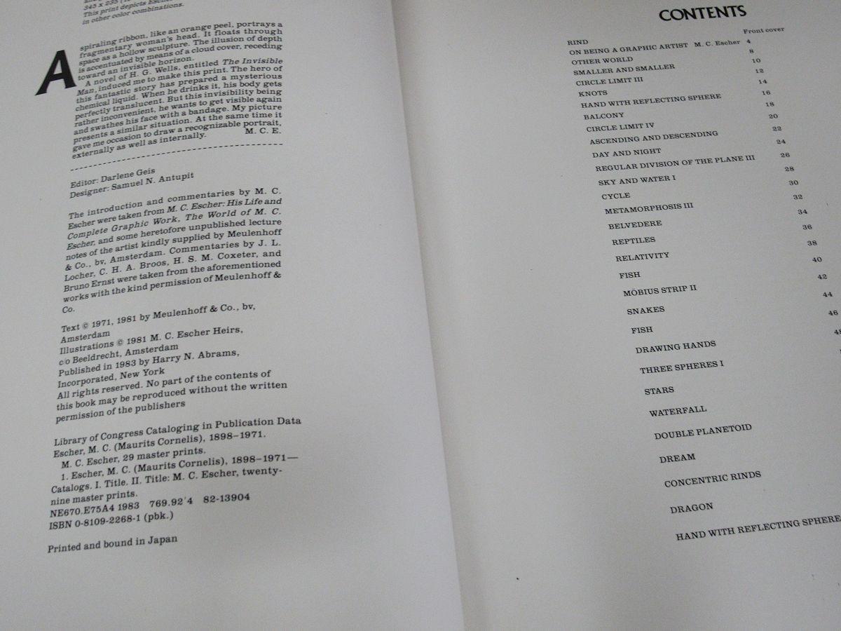 M. C. Escher 29 Master Prints Book, 11 1/2" x 16".  See additional photos!